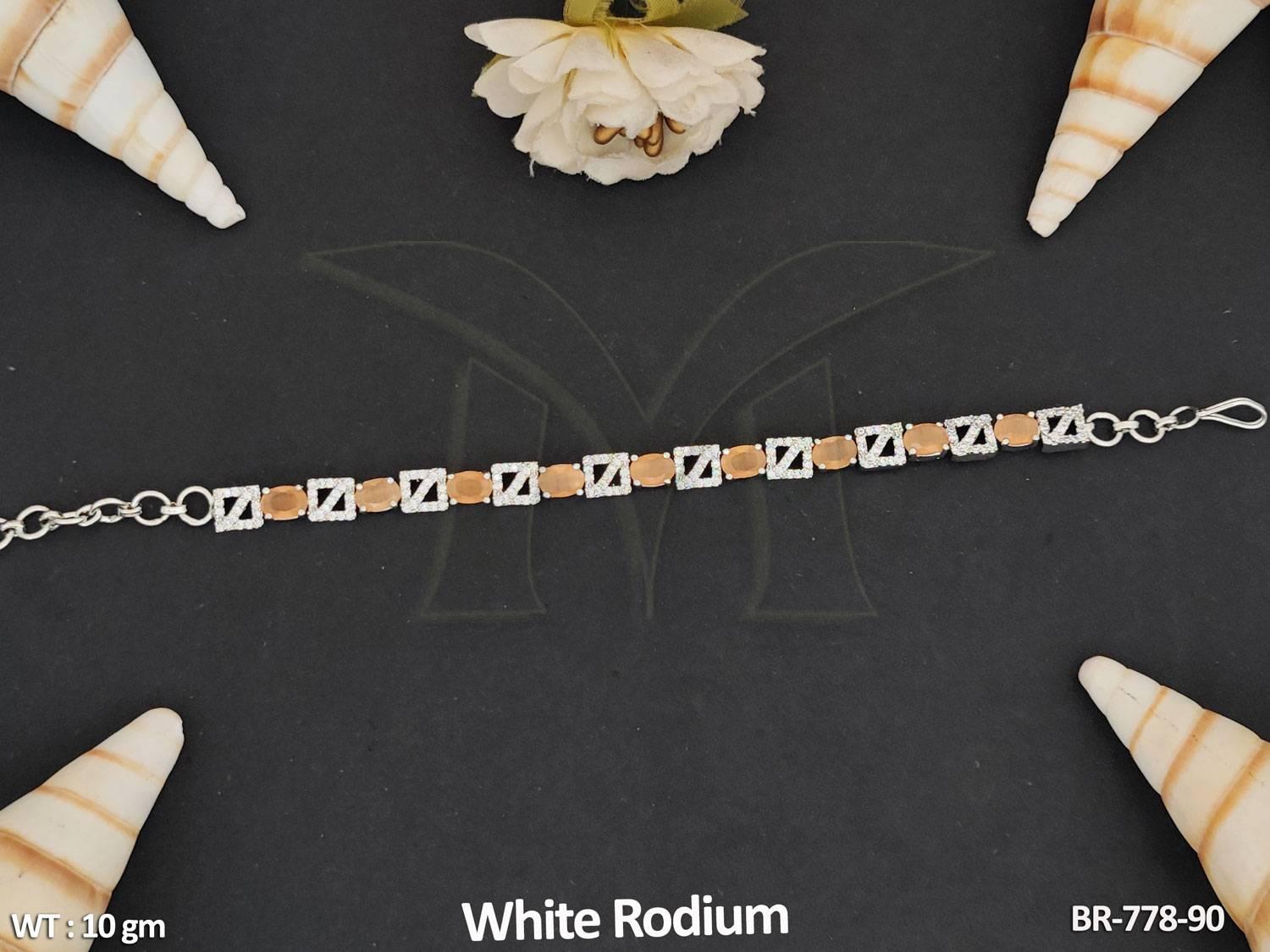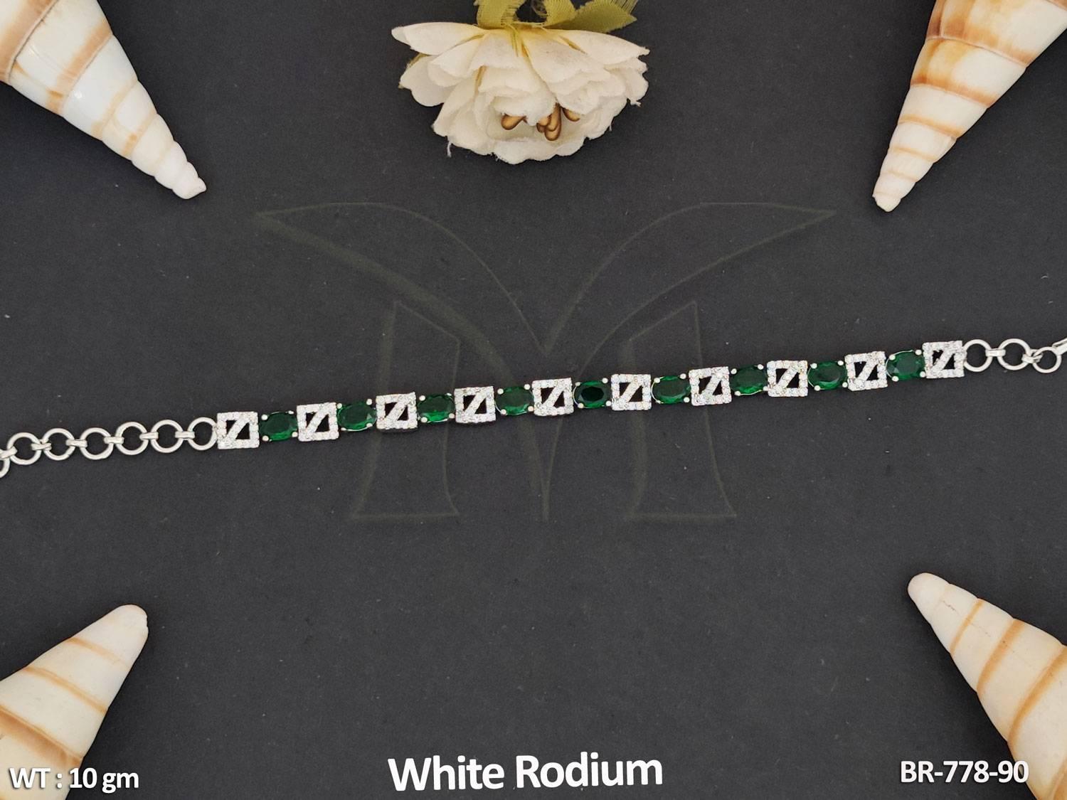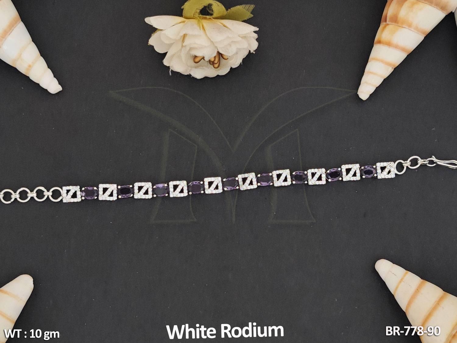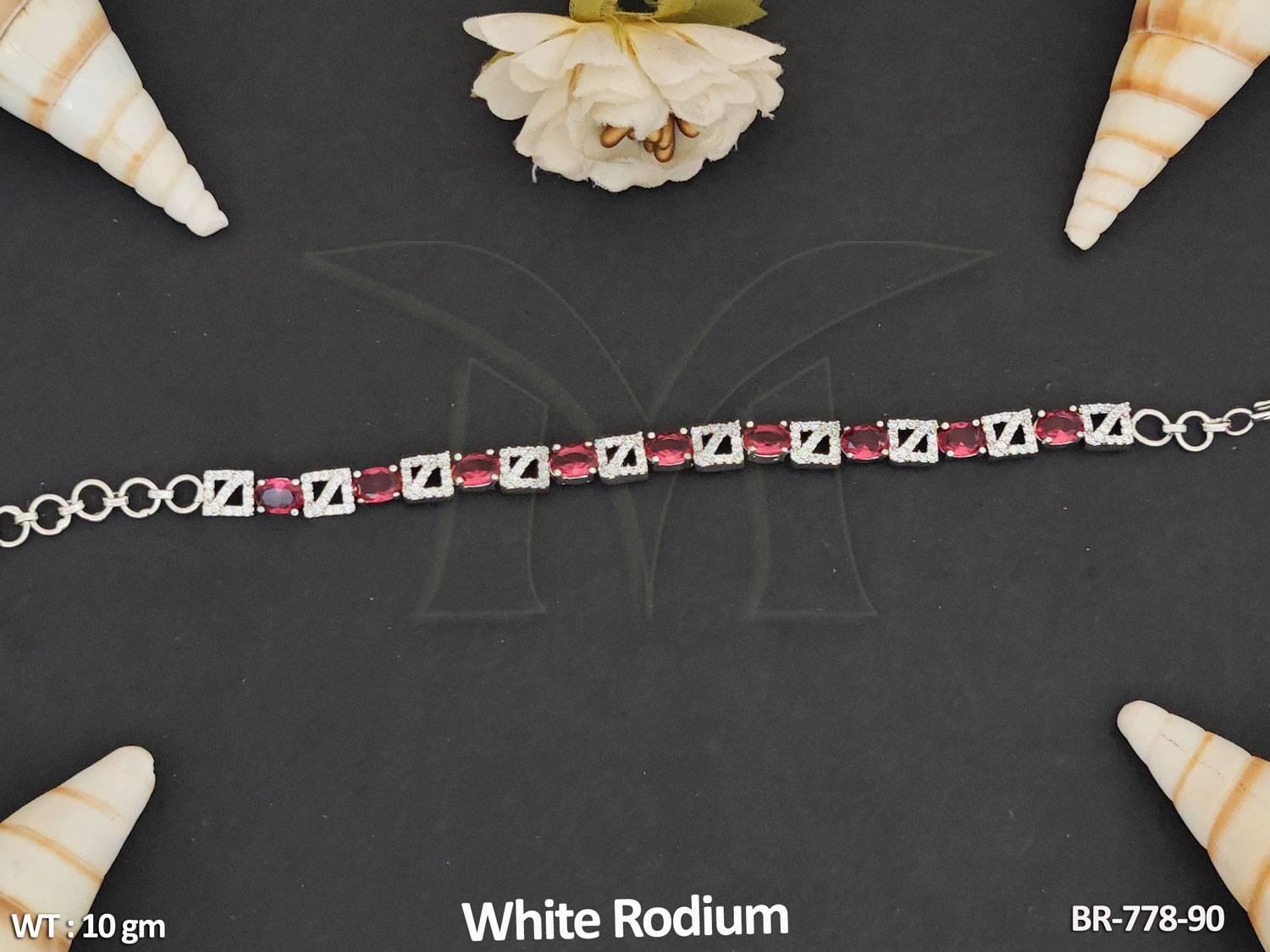 American Diamond Jewellery White Rodium Polish Stylish Full Stone Bracelet