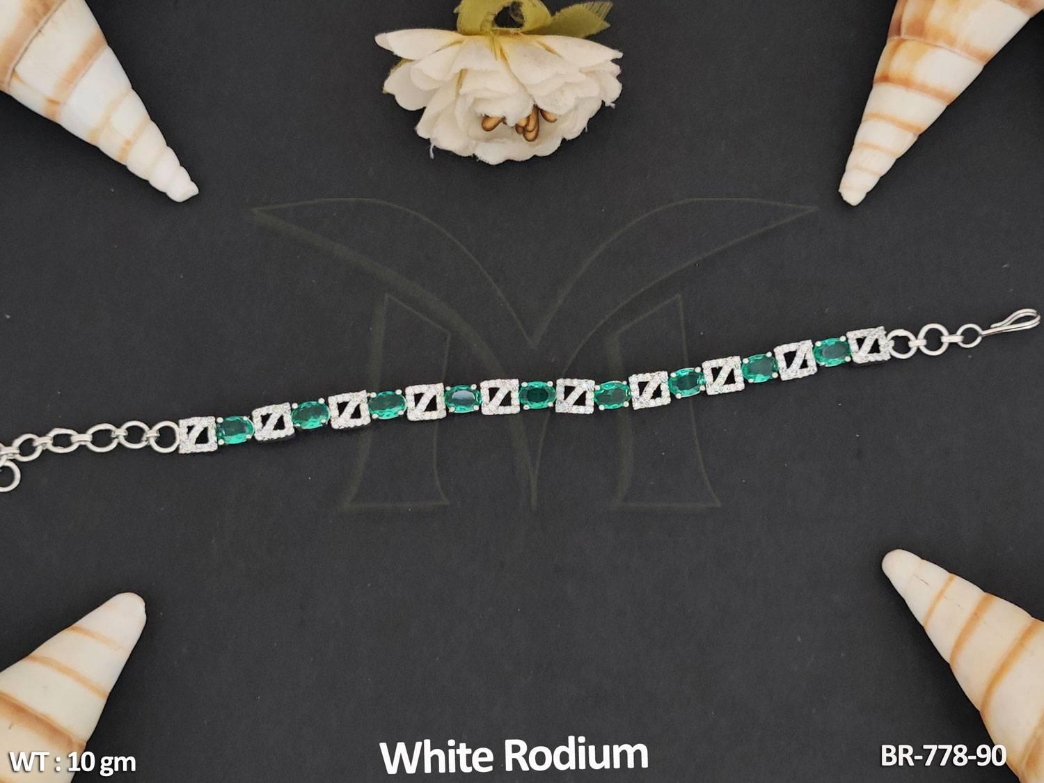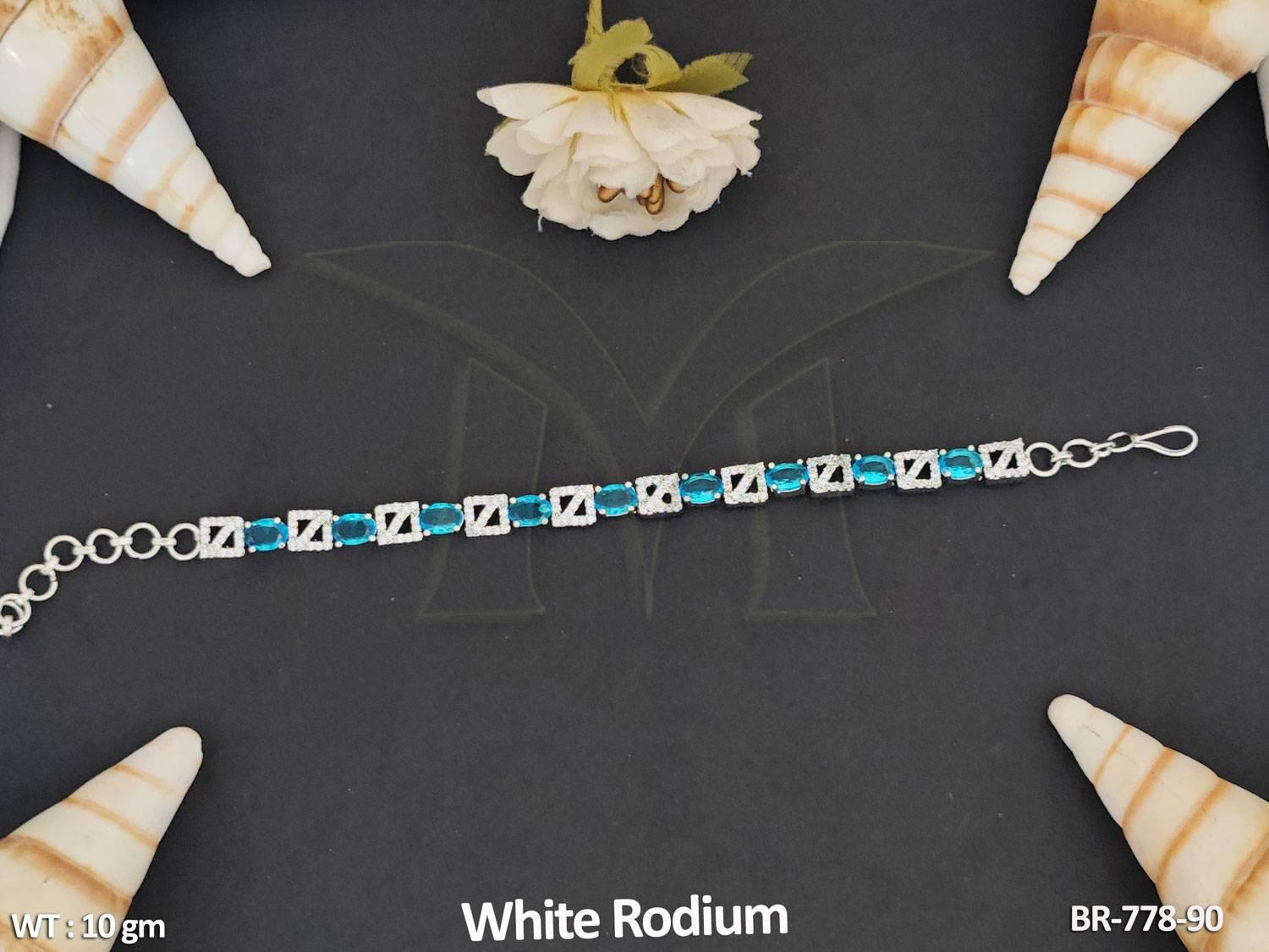 - American Diamond Jewellery White Rodium Polish Stylish Full Stone Bracelet