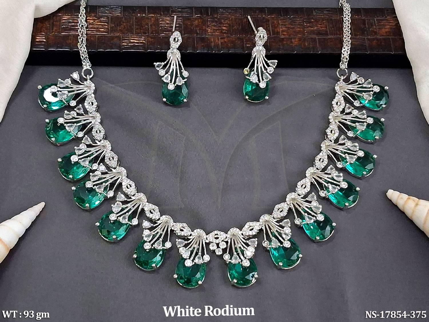 - American Diamond White Rodium AD Full Stone Party Wear Necklace set