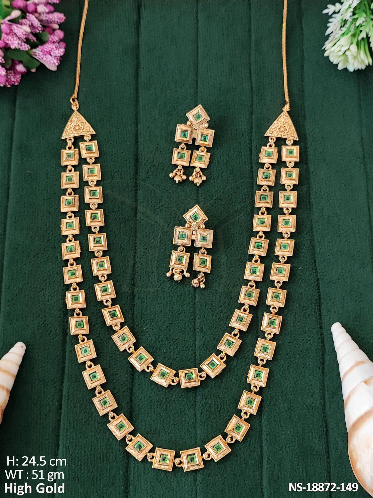 - Antique Design Full Stone High Gold Fancy Style Necklace Set