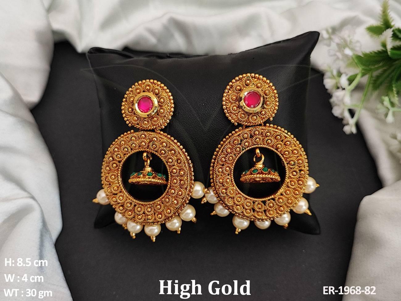 - Antique Designer Fancy Style Clustered Pearl Round Shape Party wear Earring