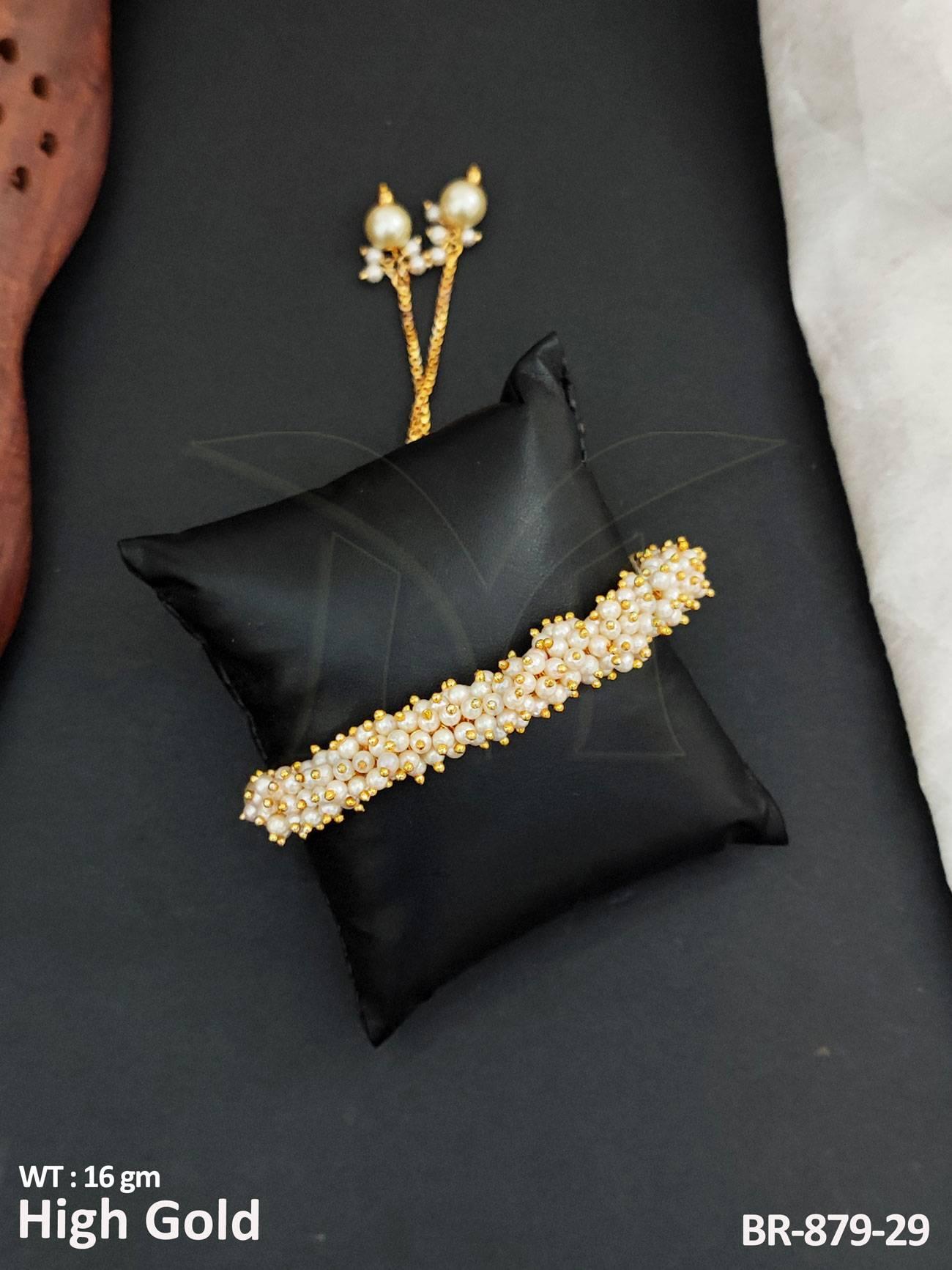- Antique Jewellery Designer High Gold Polish Clustered Pearl Bracelets
