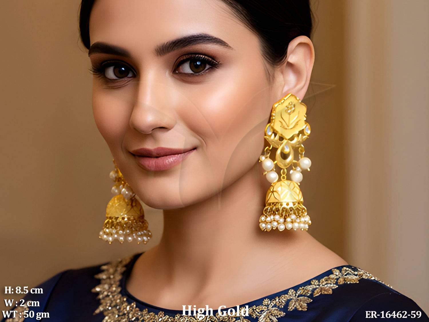 - Antique Jewellery High Gold Party Wear Jhumka Earrings