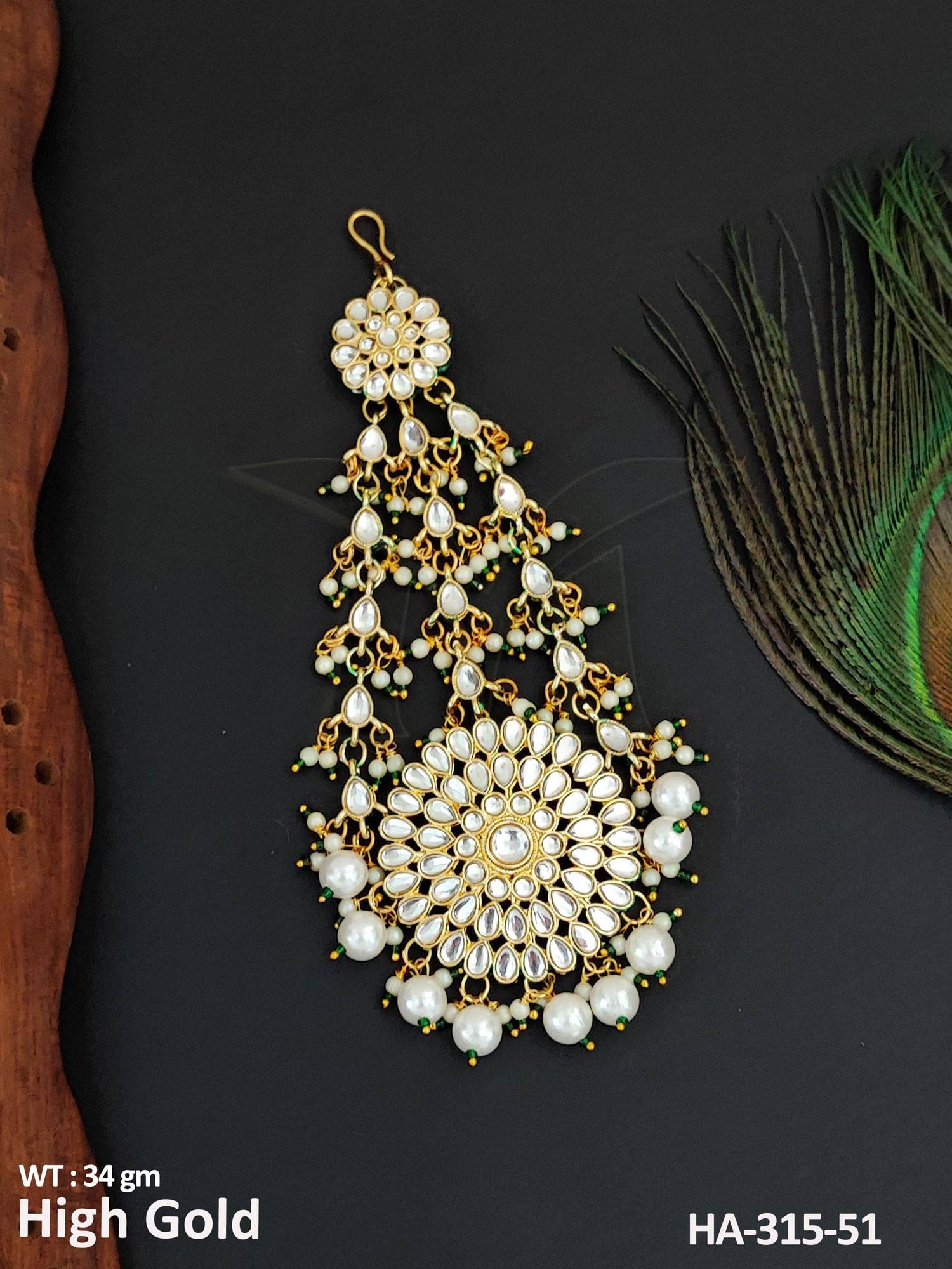 - Antique Jewellery High Gold Polish Fancy Clustered Pearl Party Wear Hair Accessories