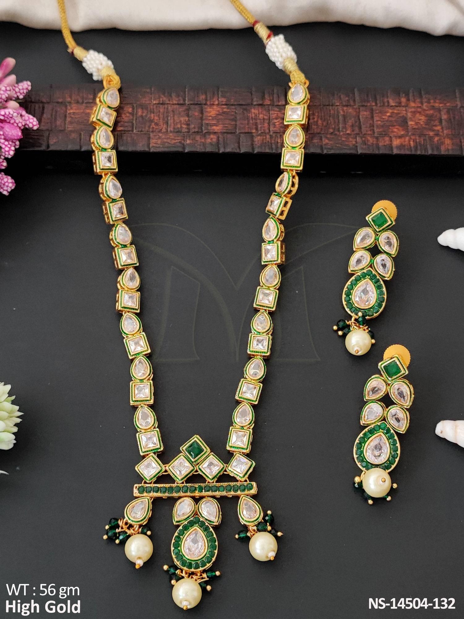 - Antique Jewellery Party Wear HIgh Gold Polish Antique Polki Necklace Set