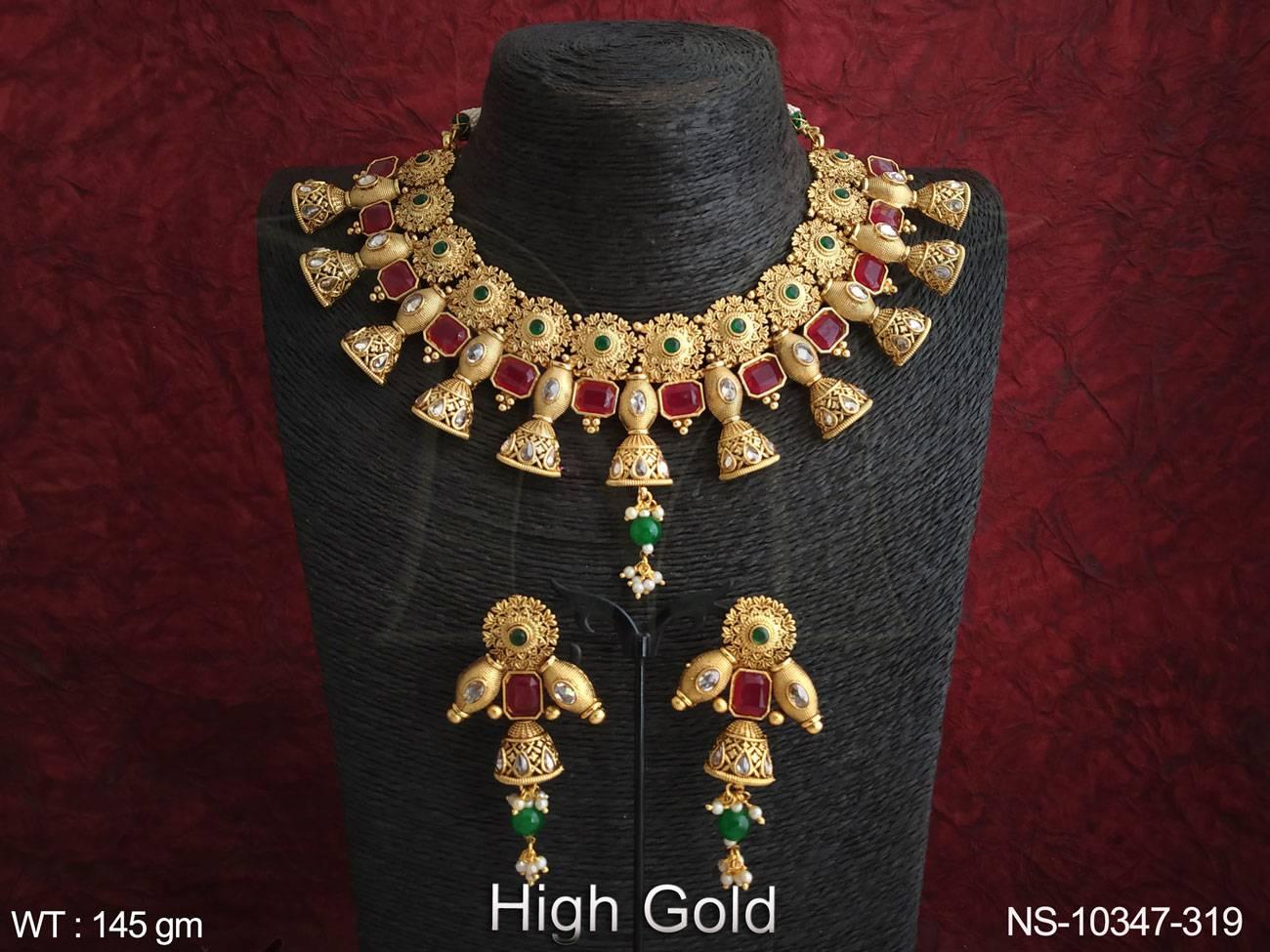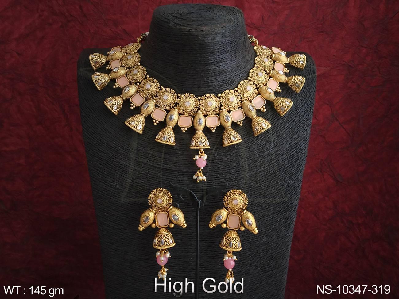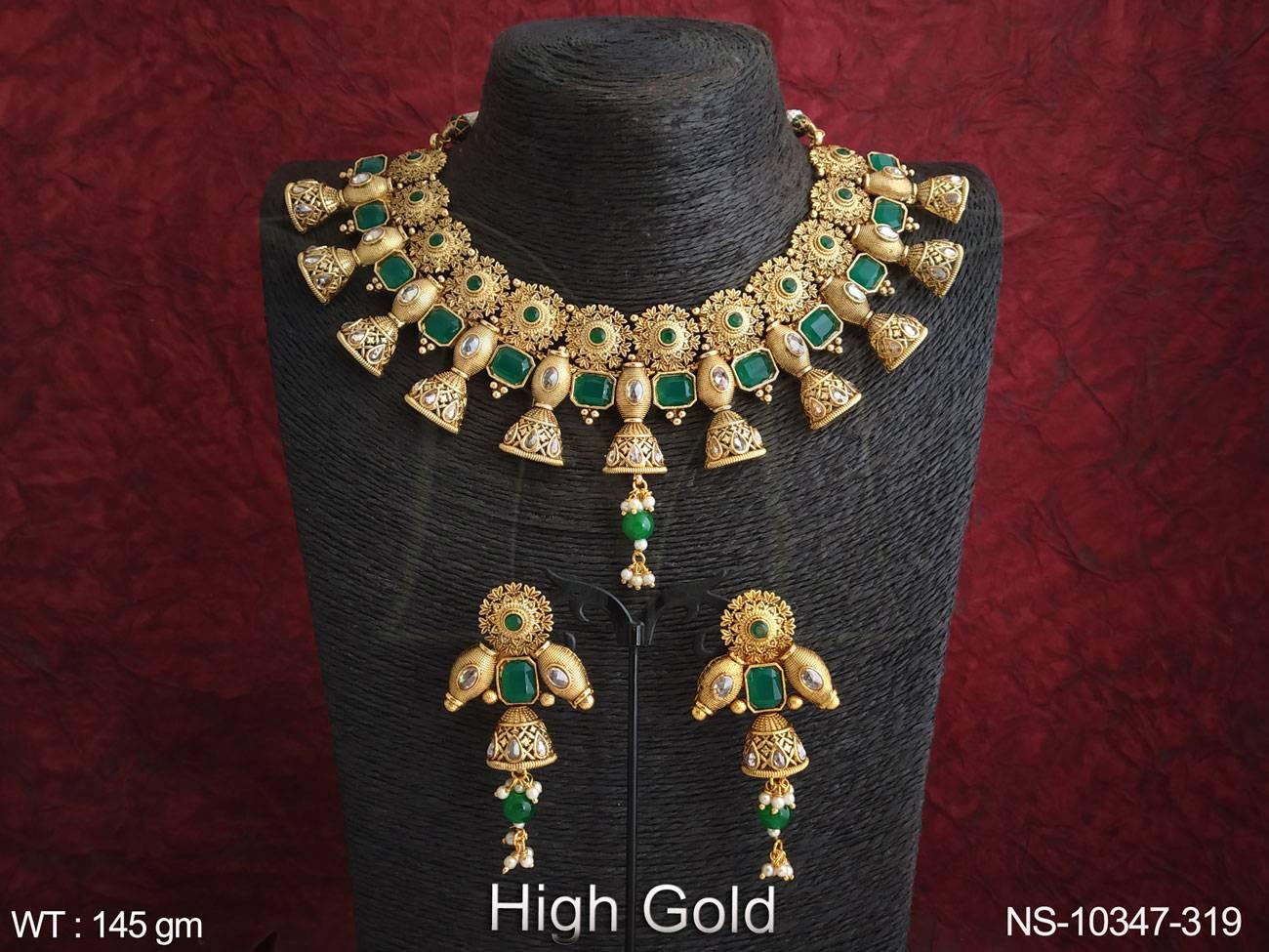 - Antique Jewelry High Gold Polish Fancy Design Wedding Wear Beautiful Antique Choker Necklace Set