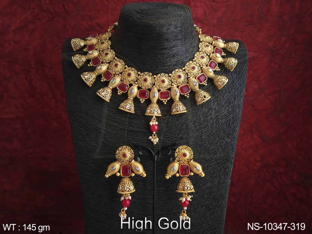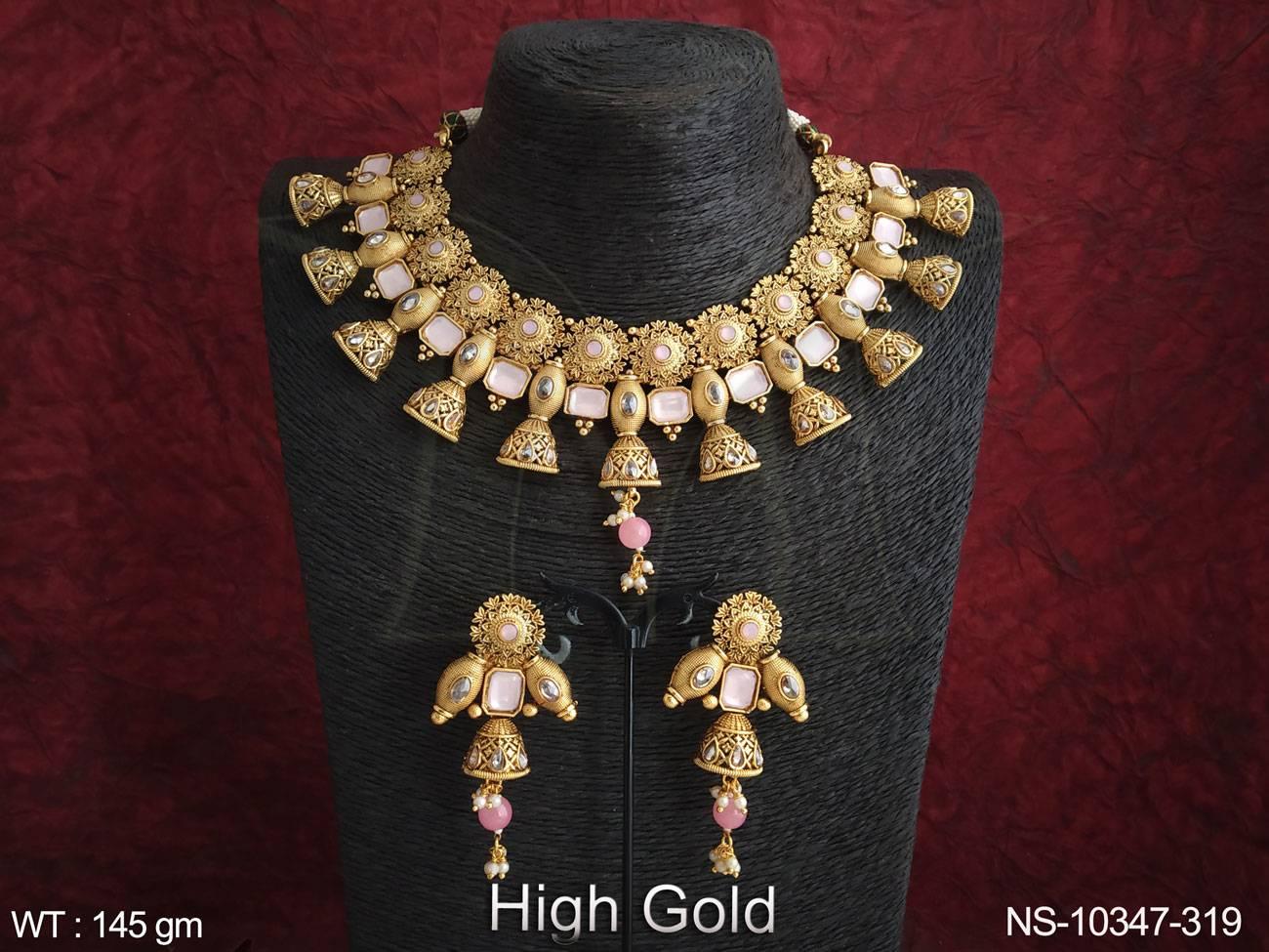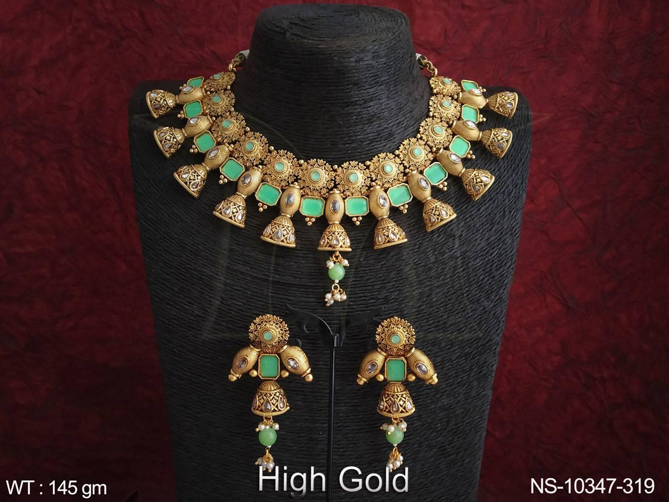 - Antique Jewelry High Gold Polish Fancy Design Wedding Wear Beautiful Antique Choker Necklace Set