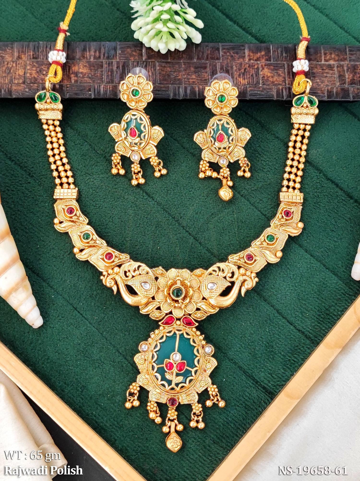 - Antique Rajwadi Polish Full Stone Fancy Design Short Necklace Set
