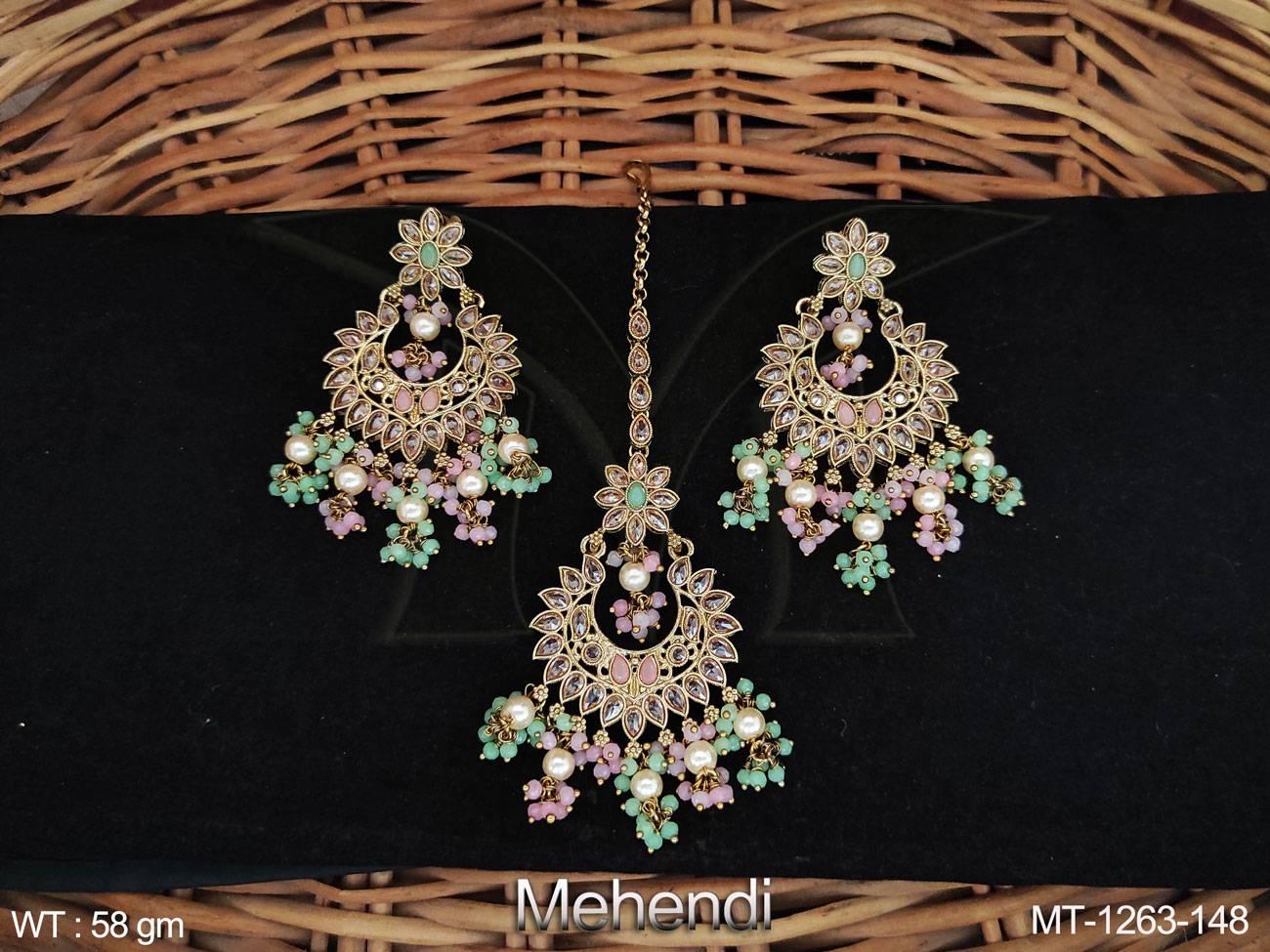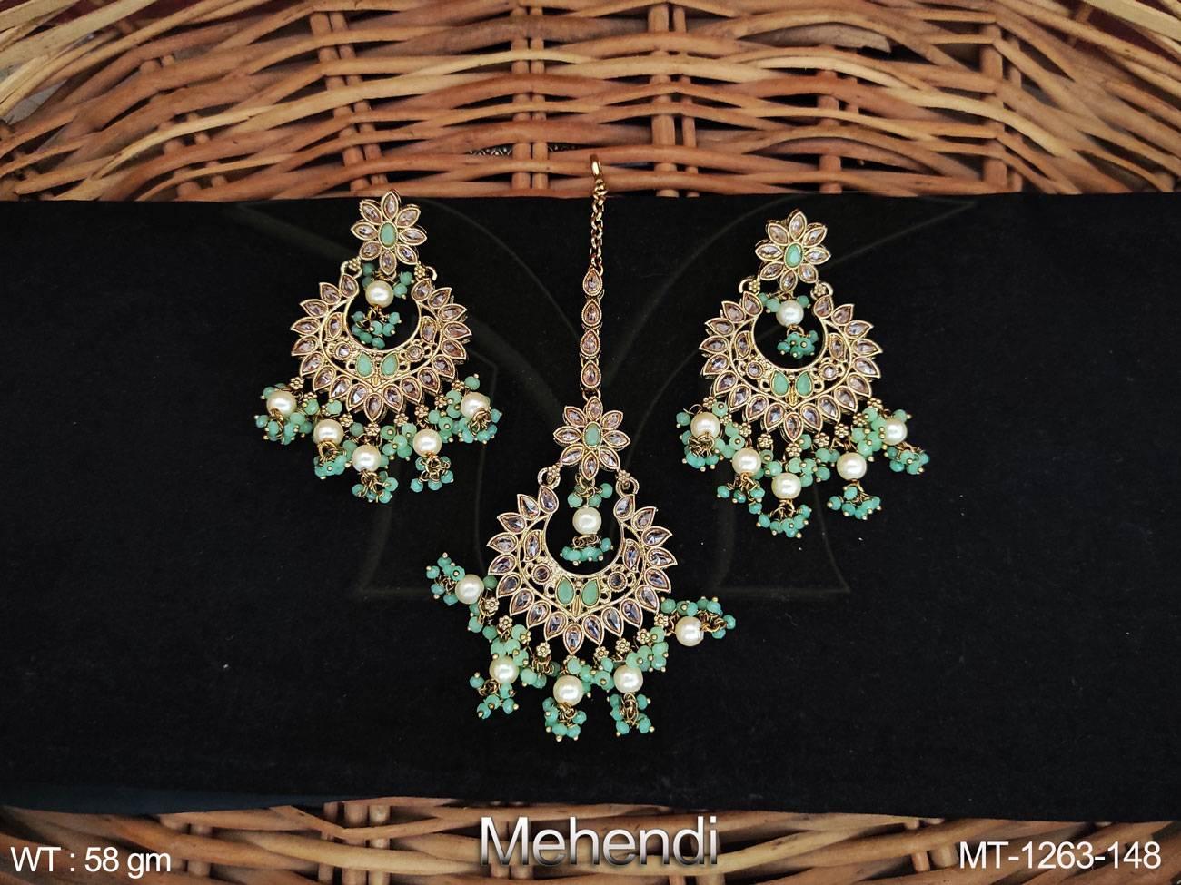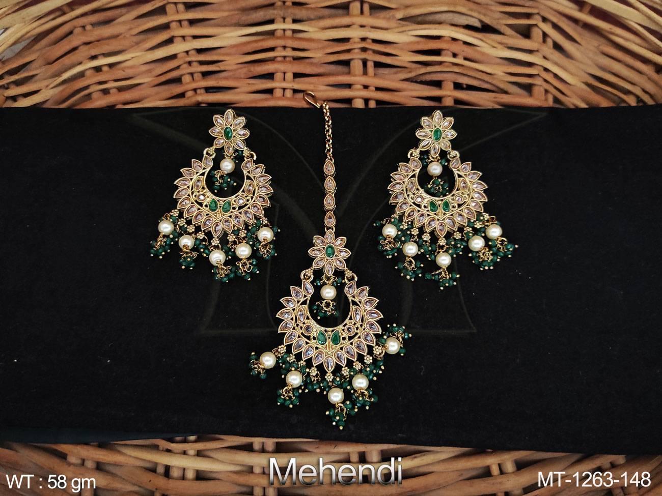 - Beautiful Antique Jewellery Designer Mehendi Polish Maang Tikka Earrings