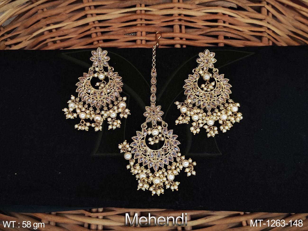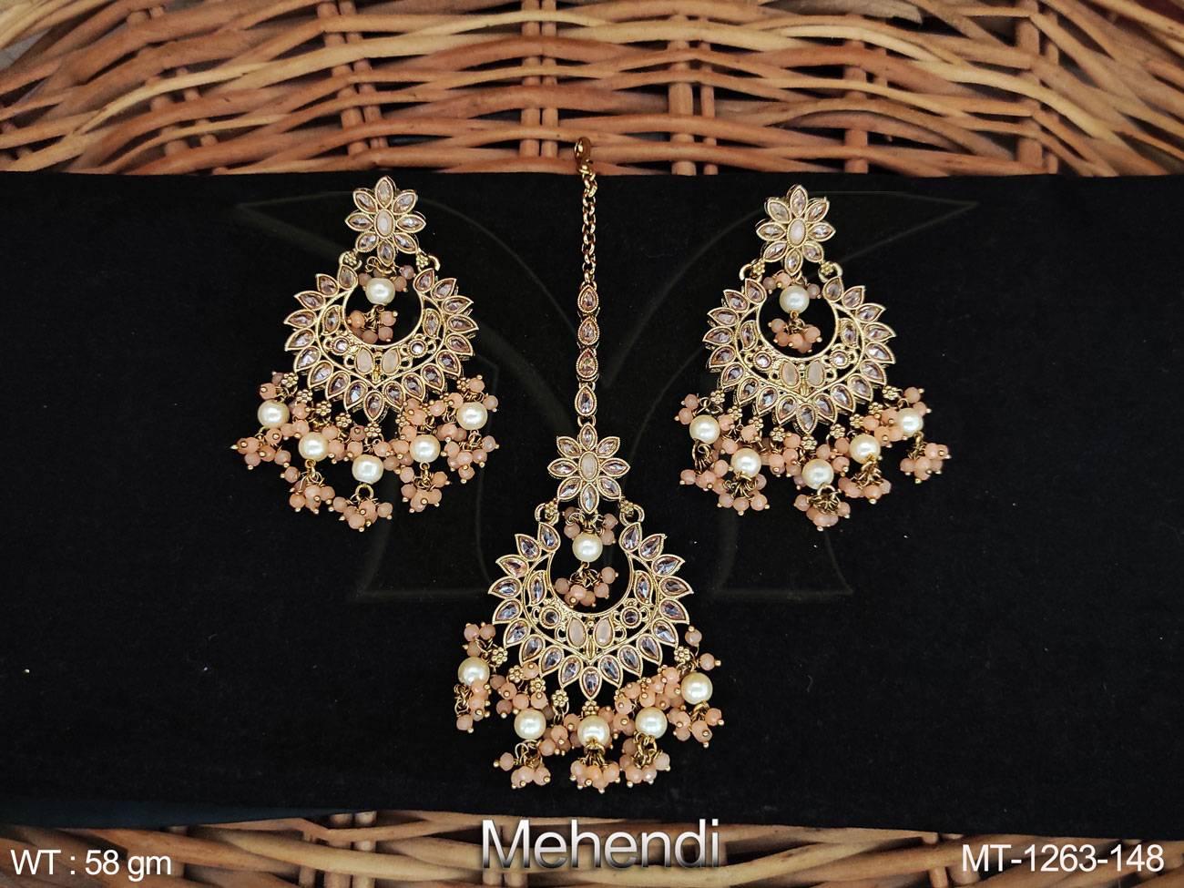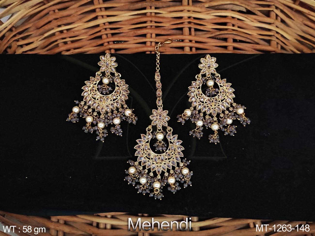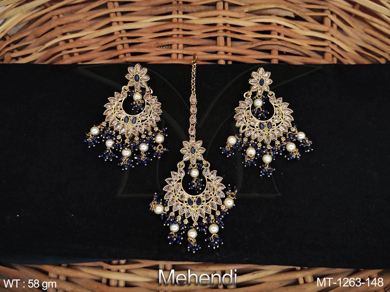 - Beautiful Antique Jewellery Designer Mehendi Polish Maang Tikka Earrings