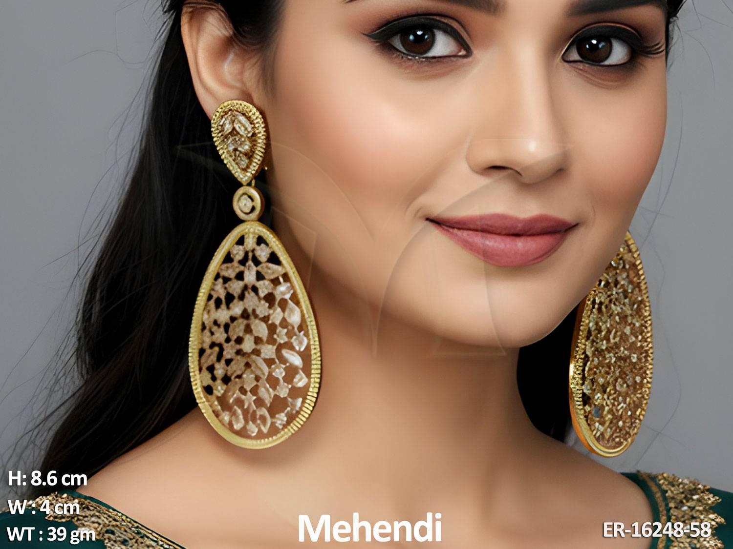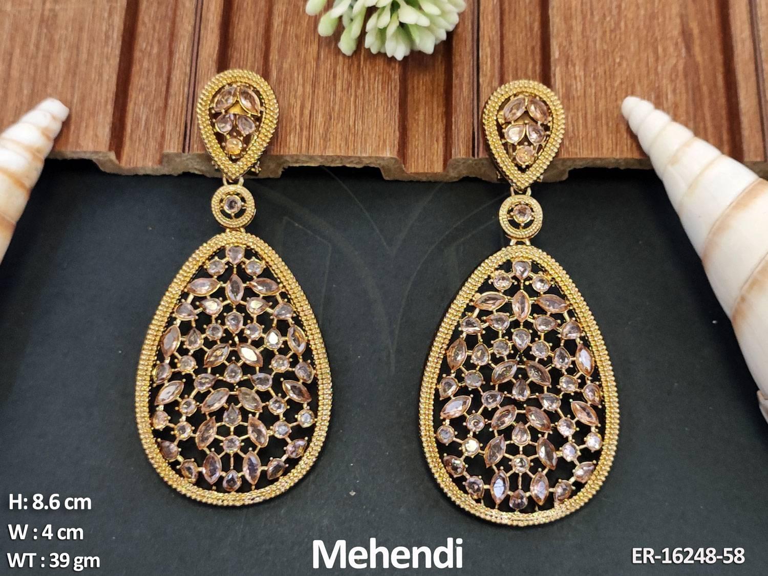 - Beautiful Designer Mehendi Polish Full Stone Party wear Earrings