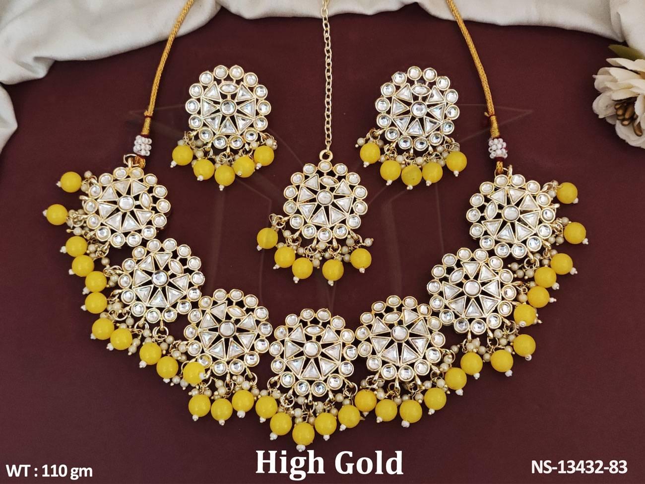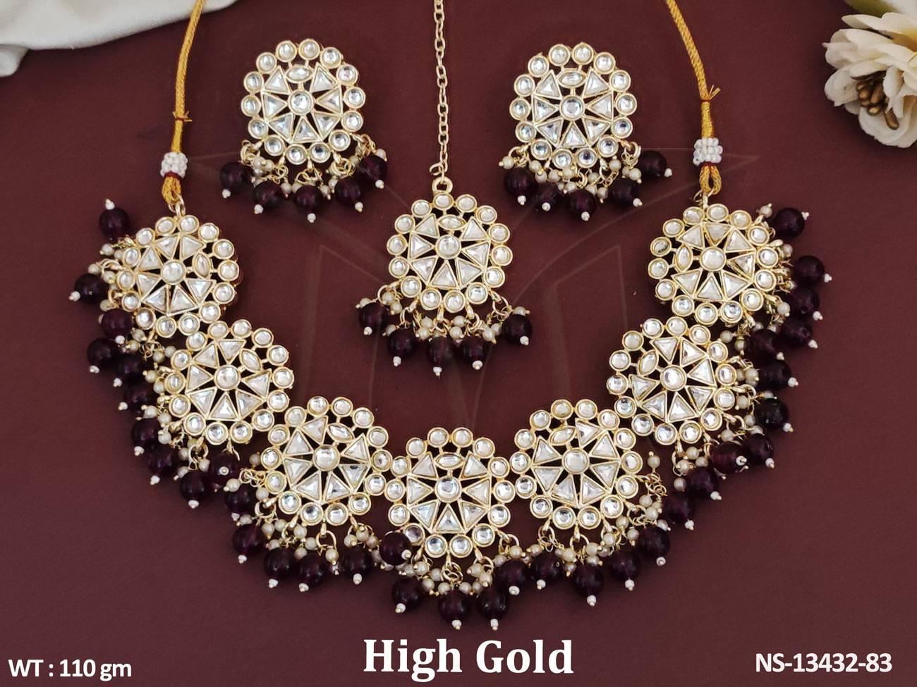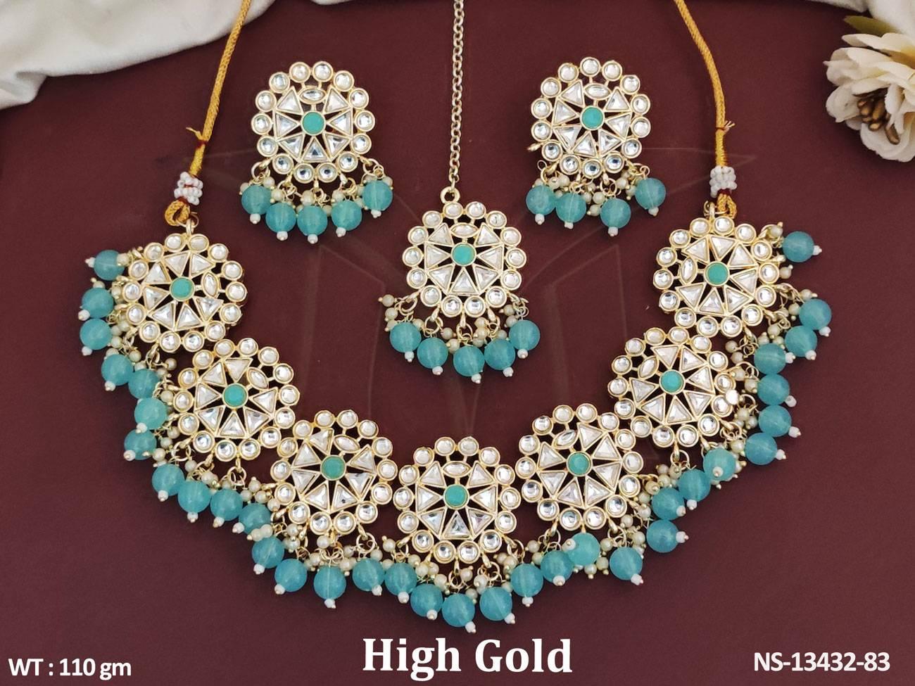 - Beautiful Fancy Design Party Wear High Gold Polish Kundan Choker Necklace Set