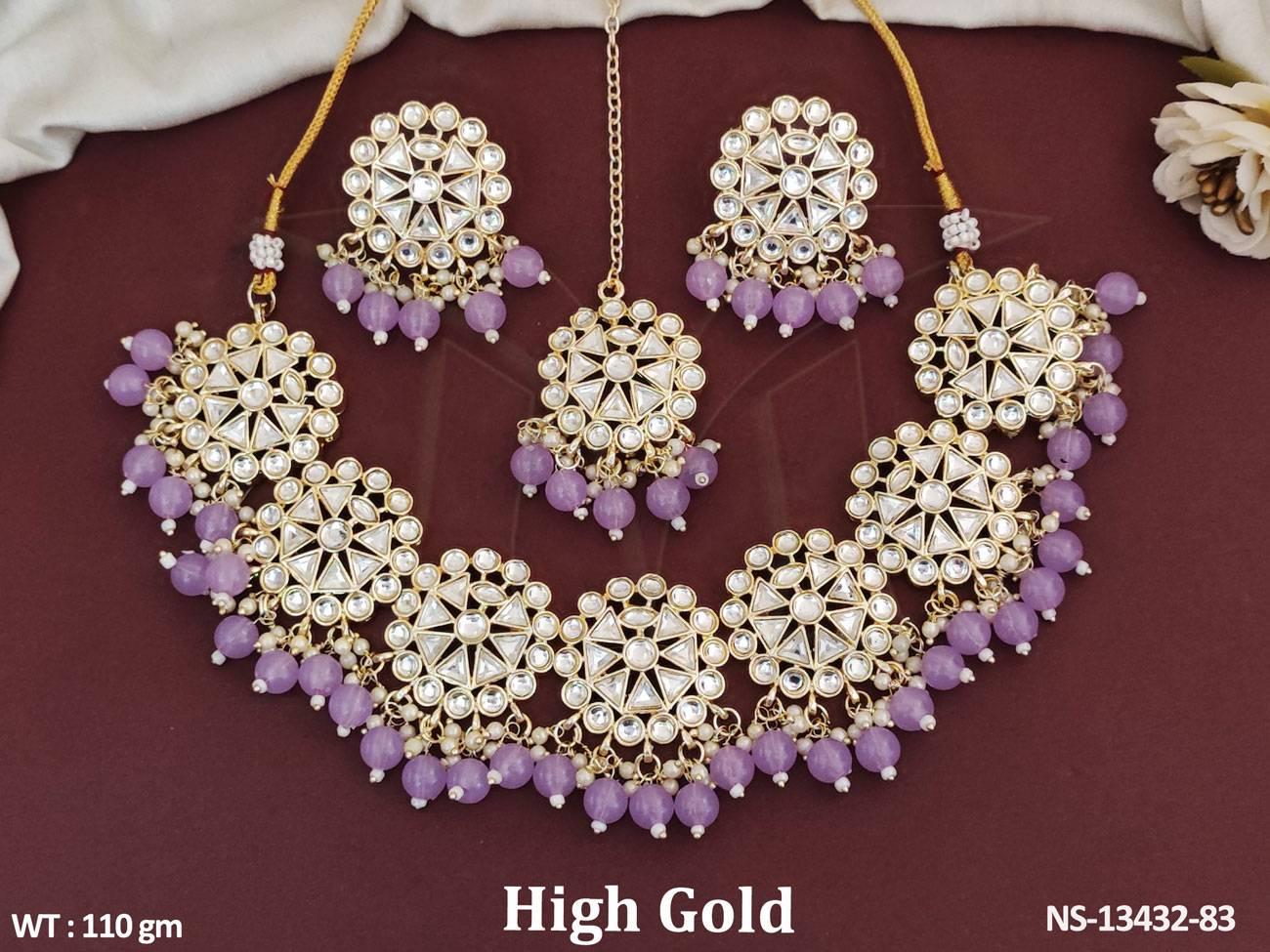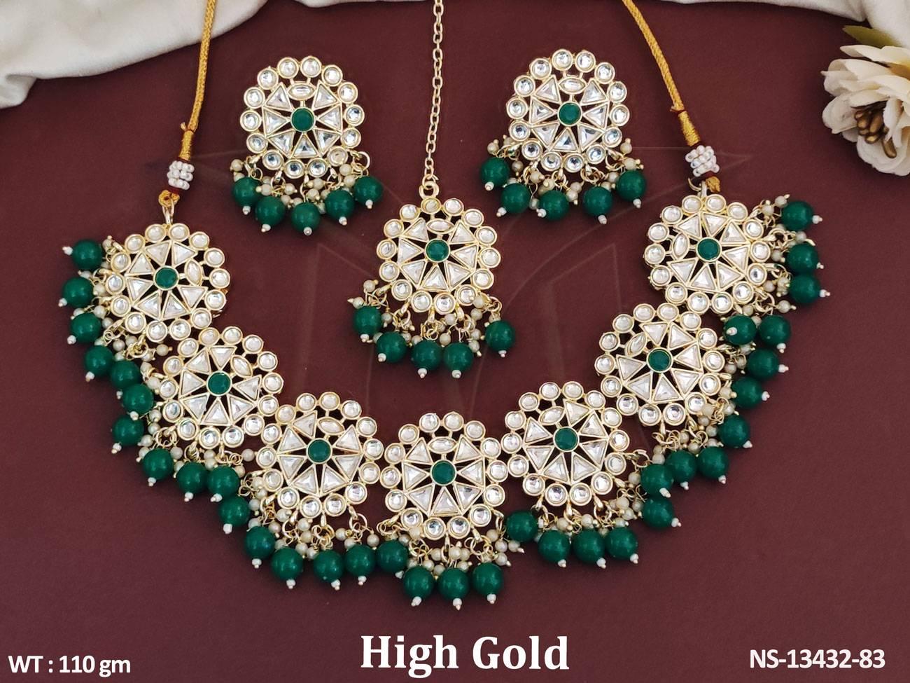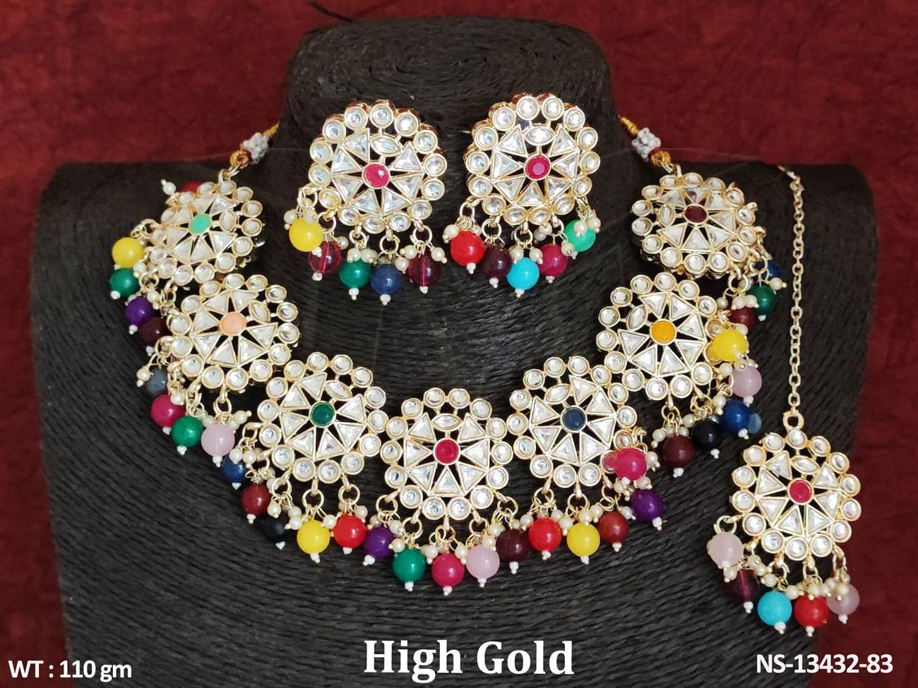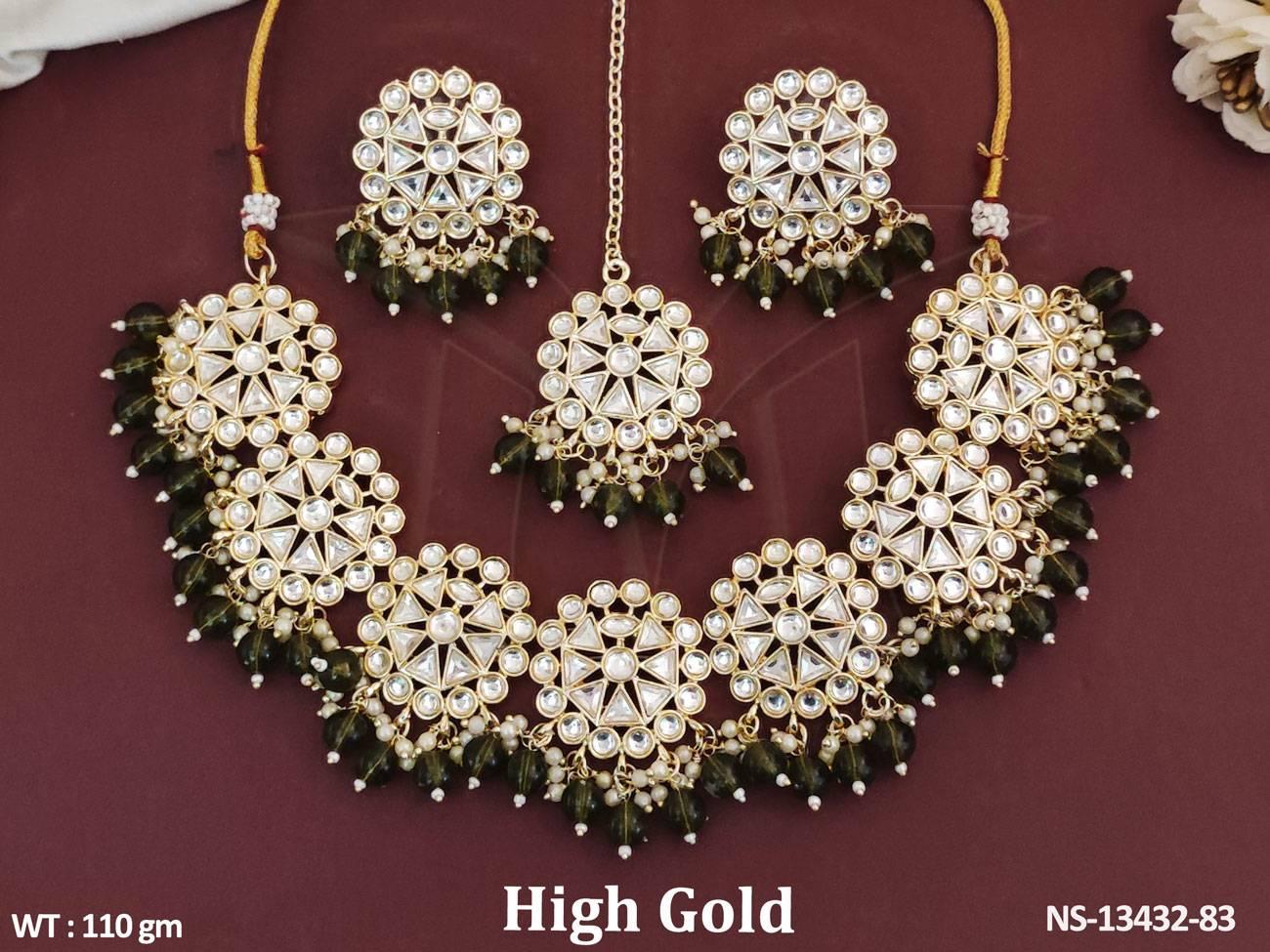 - Beautiful Fancy Design Party Wear High Gold Polish Kundan Choker Necklace Set