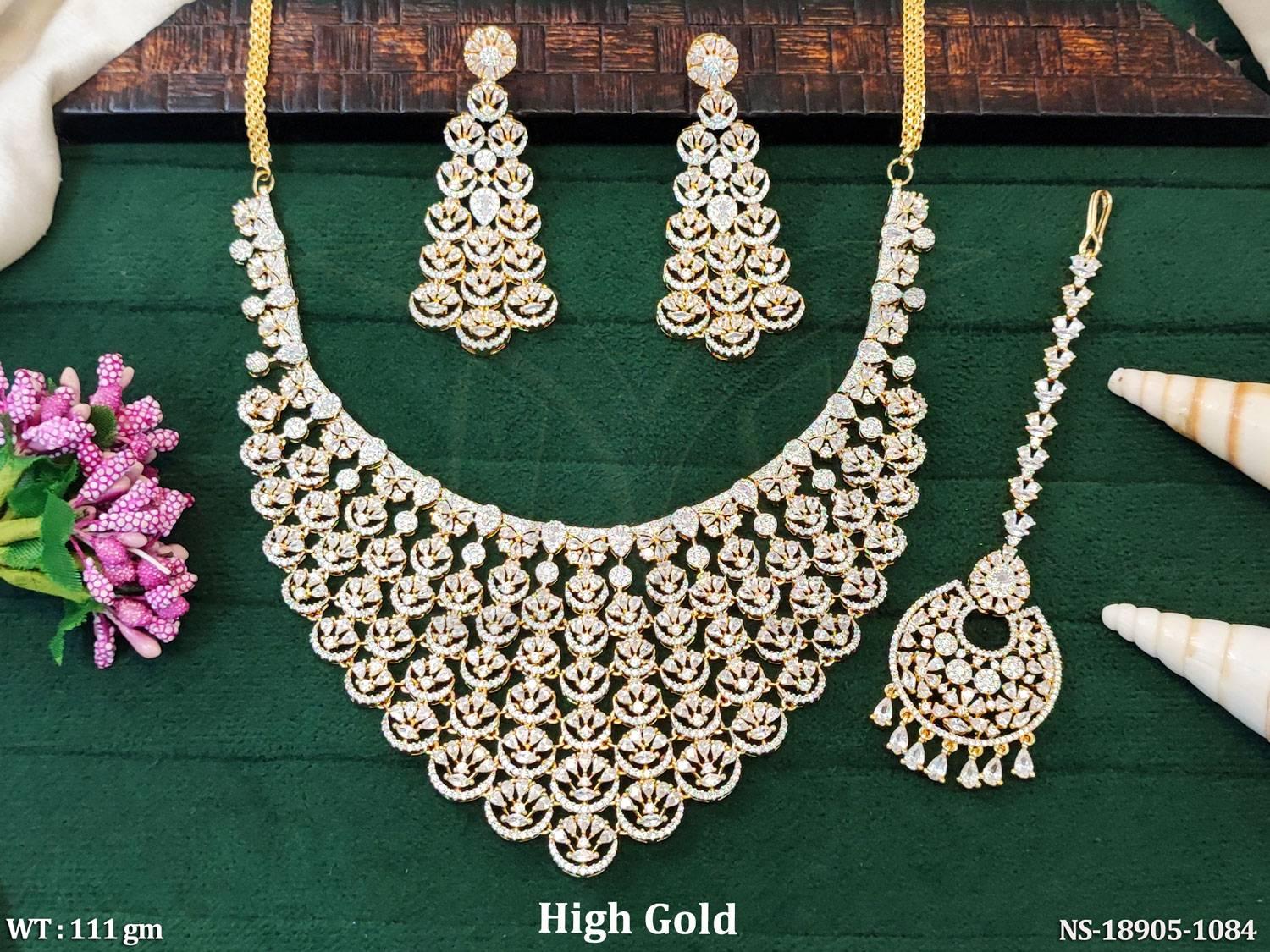 Beautiful High Gold Polish Full AD CZ Stone Party Wear Necklace Set