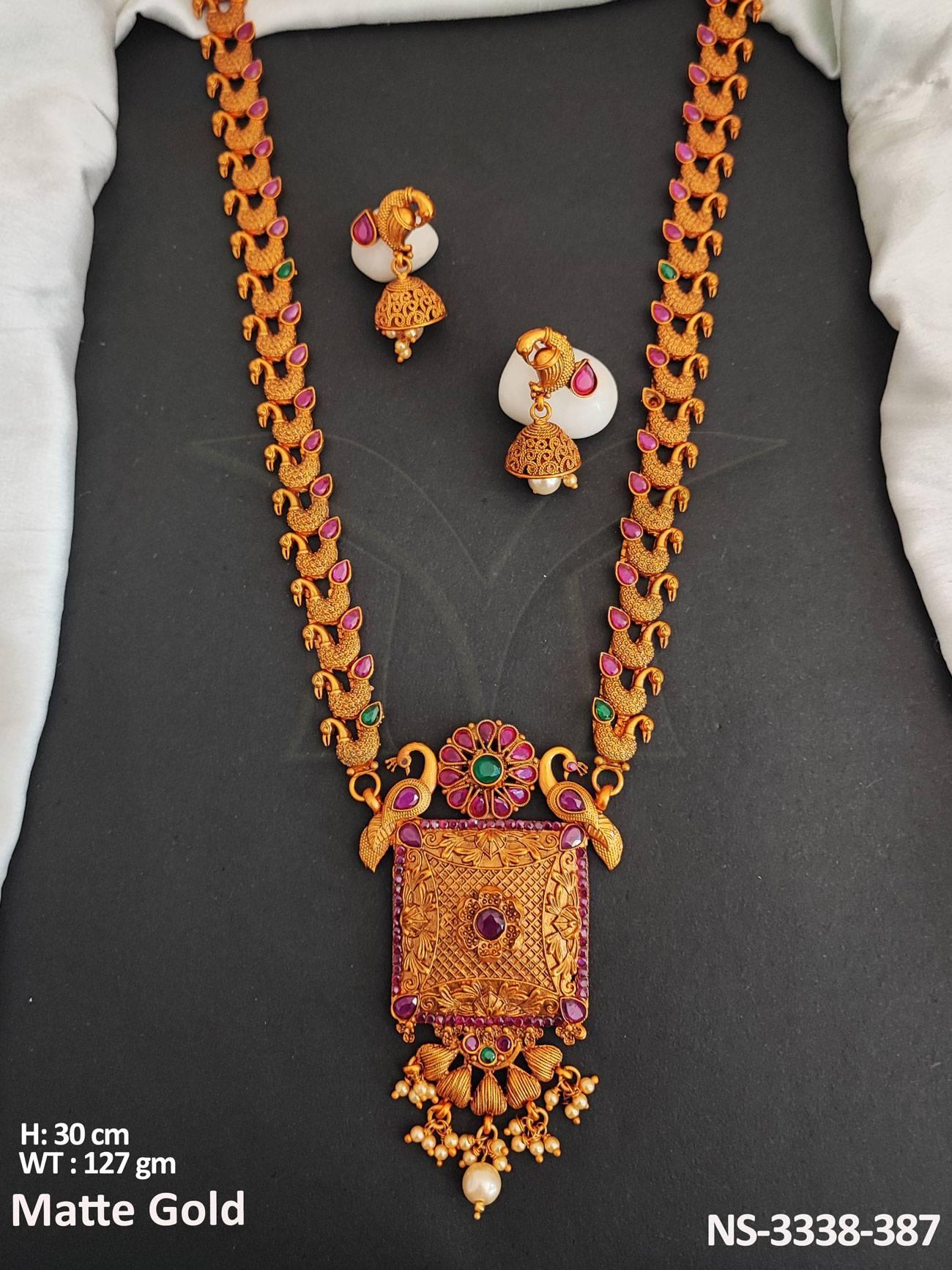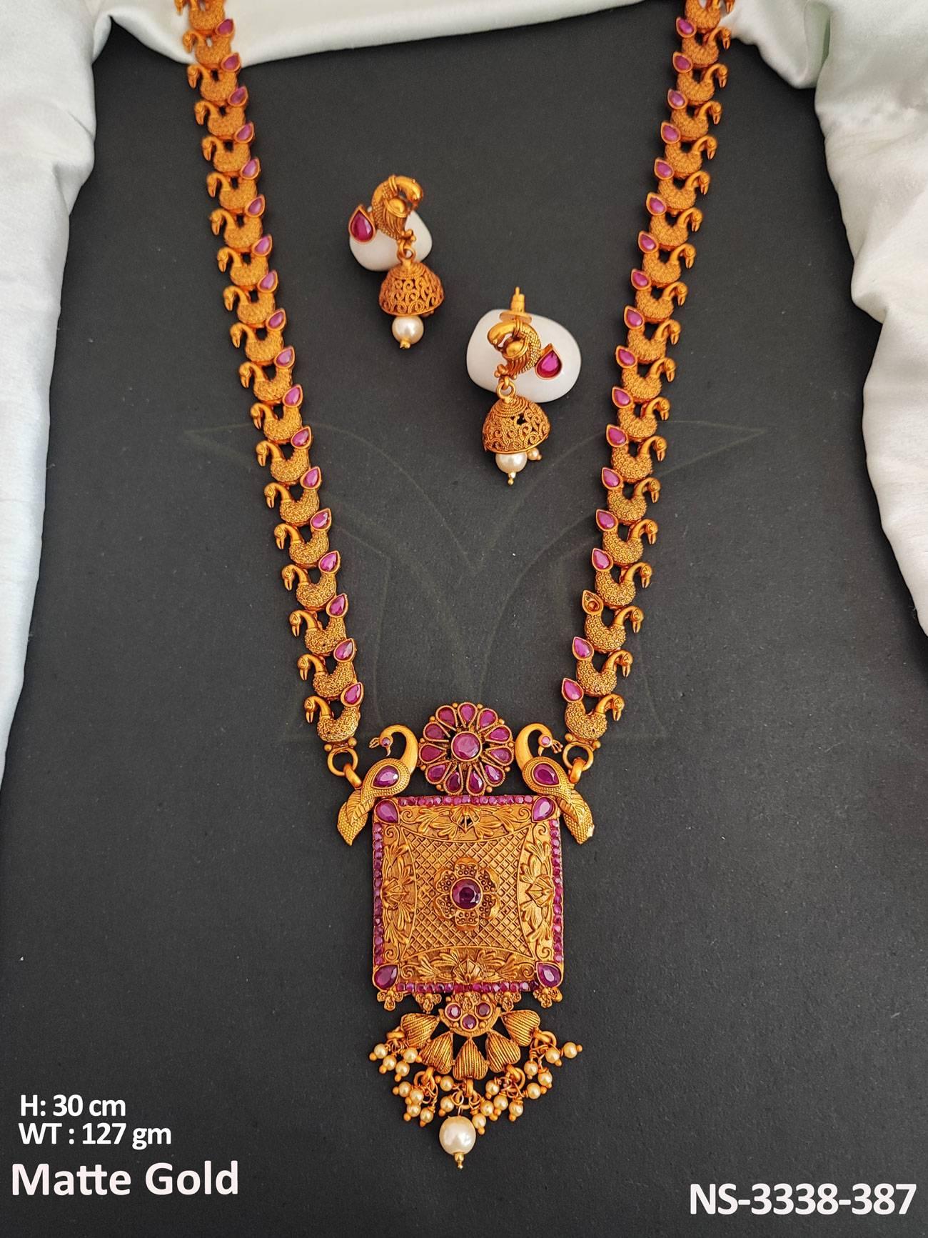 Beautiful Matte Gold Polish Fancy Style Party Wear Necklace Set