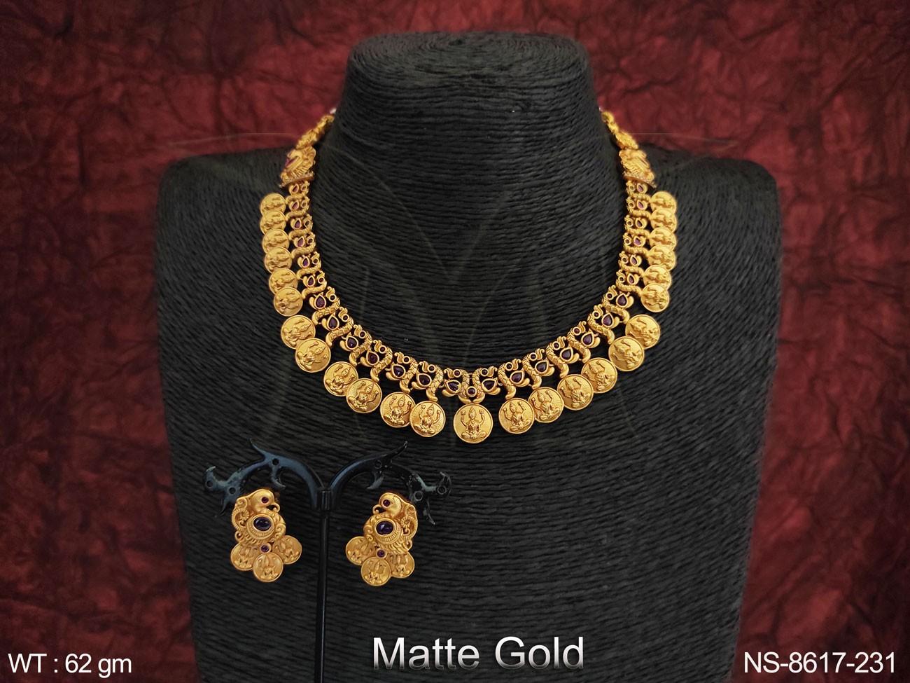 Beautiful Matte Gold Polish Temple Coin Necklace Set
