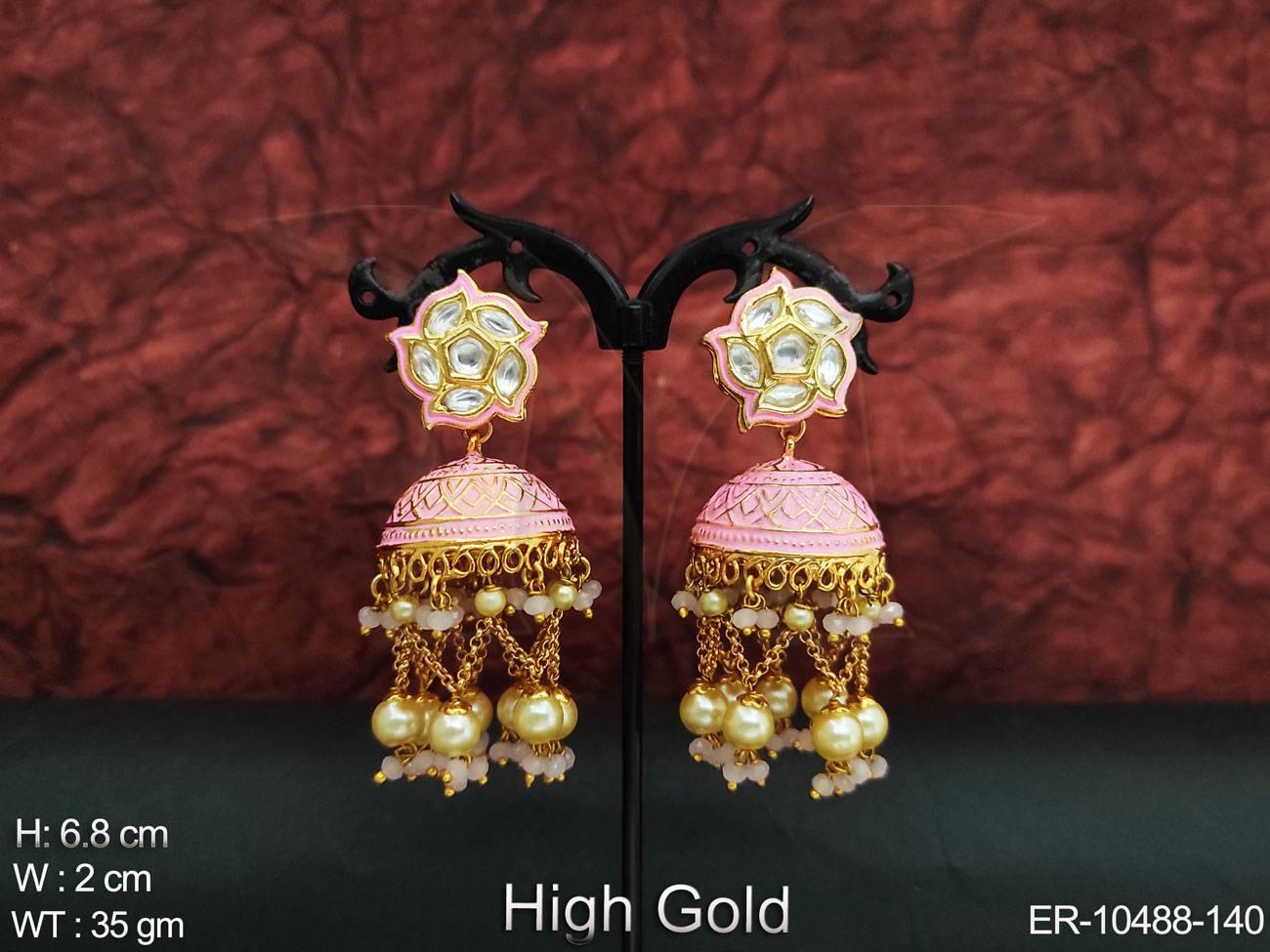 Beautiful Meenakari Design High Gold Polish Party wear Long jhumka Earring
