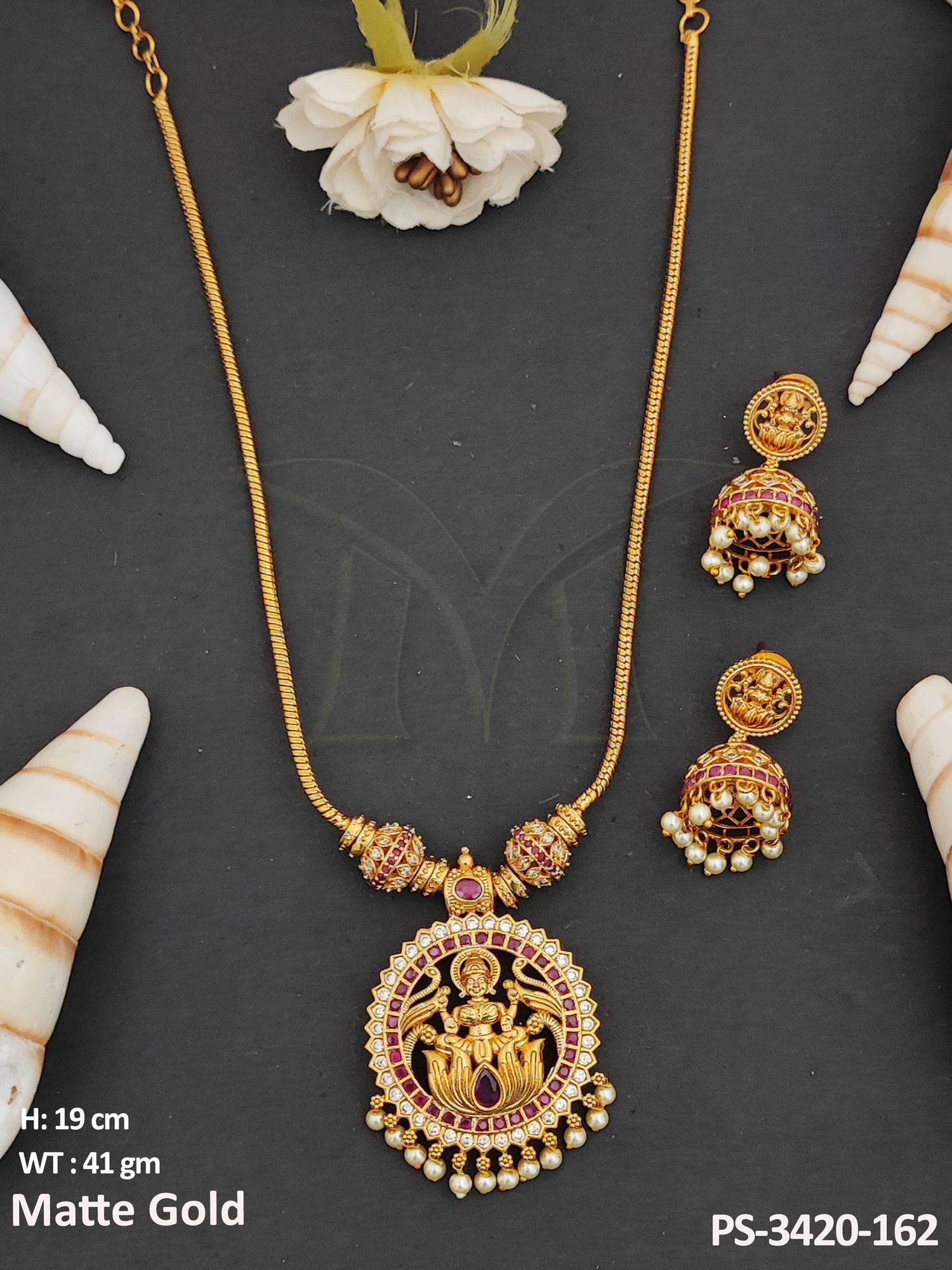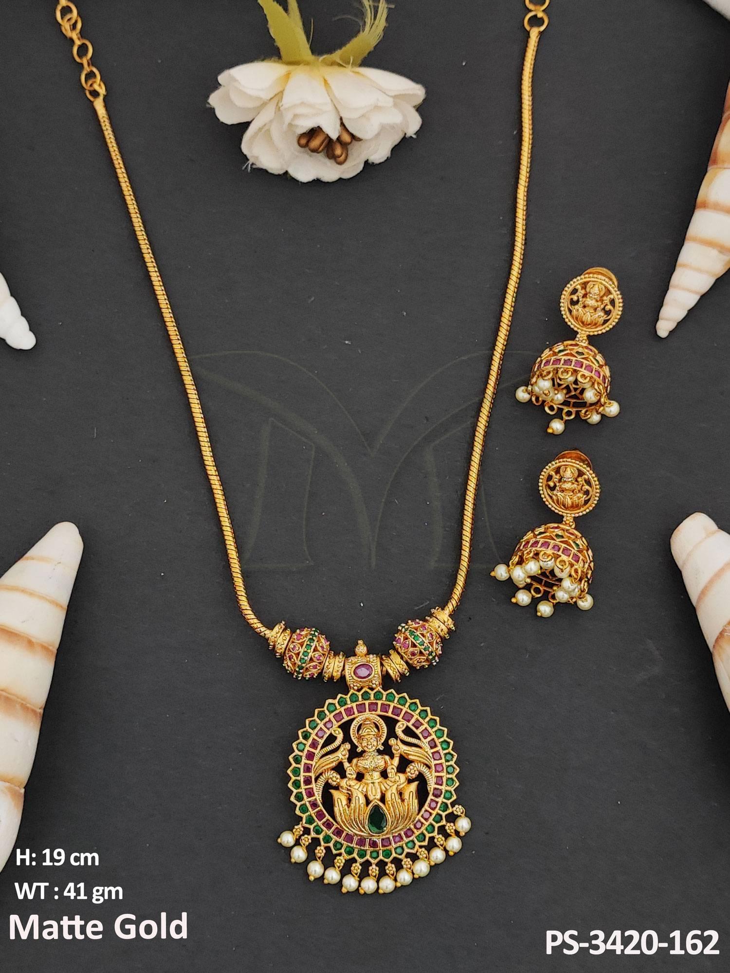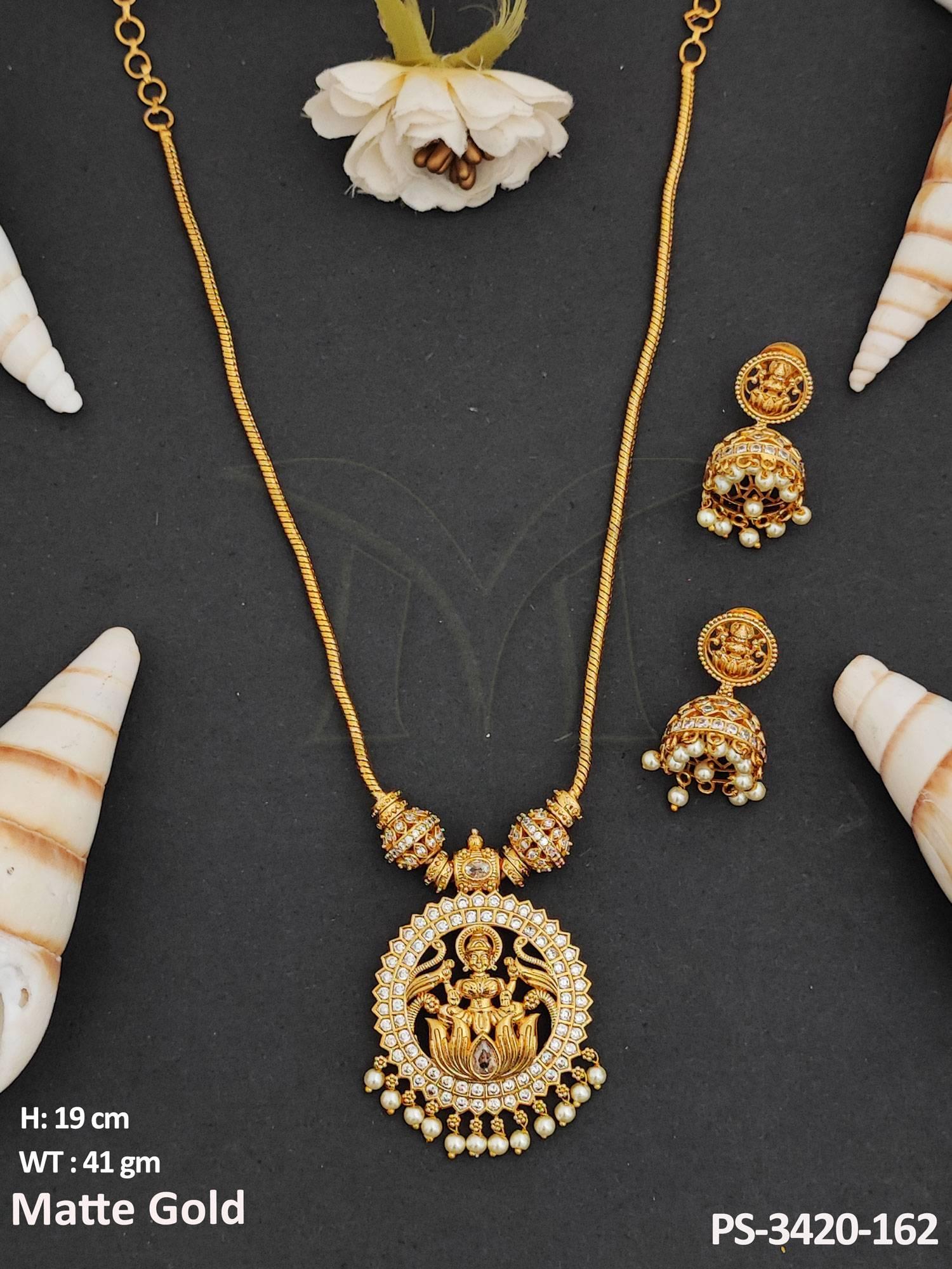 - Clustered Pearl Designer Fancy Style Matte Gold Polish Long Temple Jewellery Temple Pendant Set