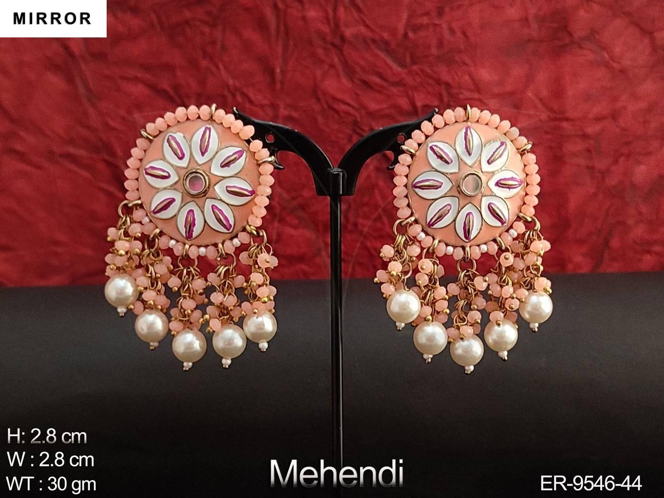 - Designer Beautiful Fancy Style Party wear Mirror Design Long Earring