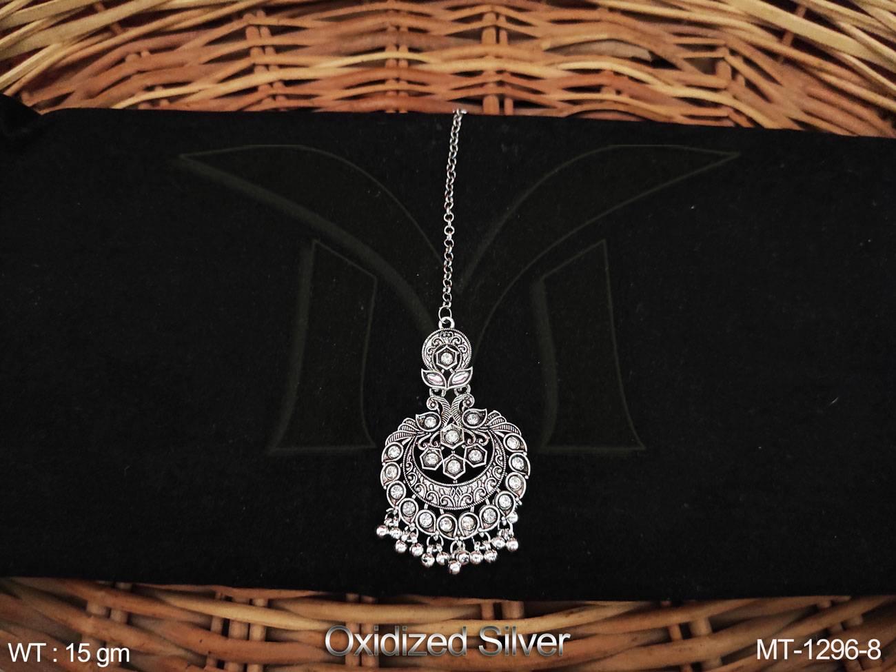 - Designer Fancy Design Party wear Beautiful Oxidised Silver Polish Oxidised Jewellery Maang Tikka