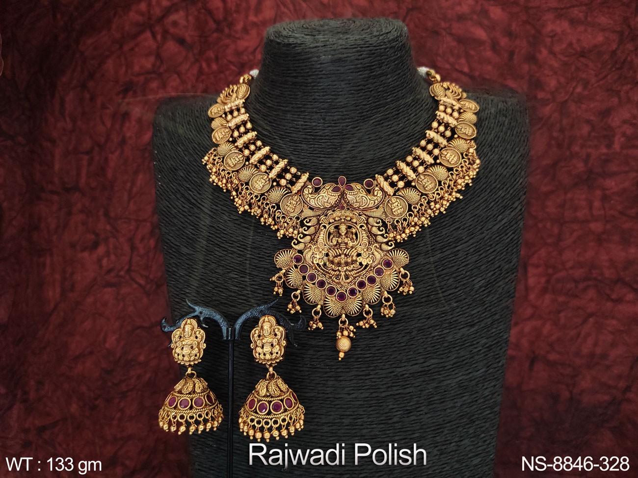 - Designer Fancy Style Beautiful Rajwadi Polish Temple Necklace Set