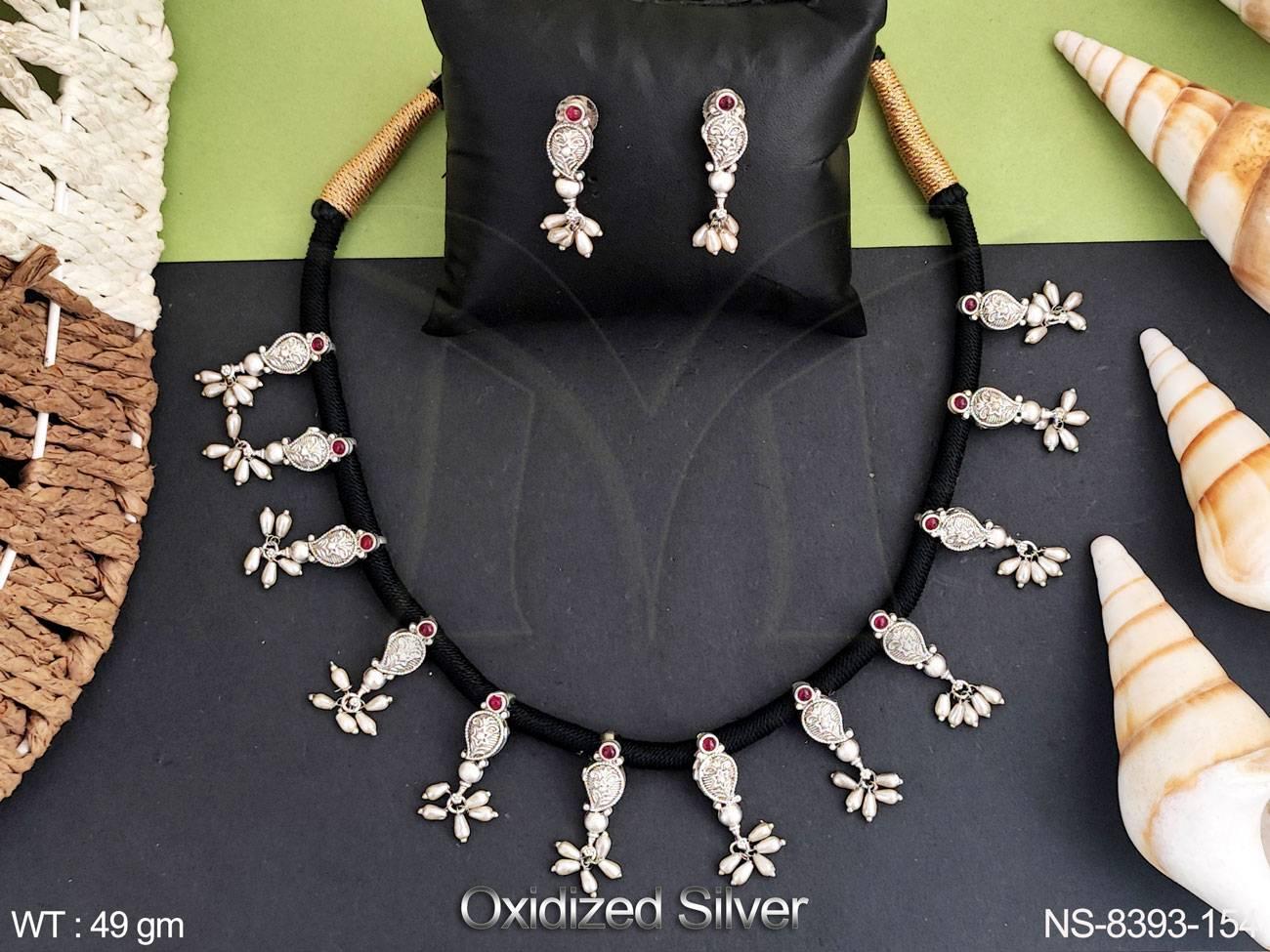 2. Designer Fancy Style Oxidized Silver Polish Party wear Necklace Set