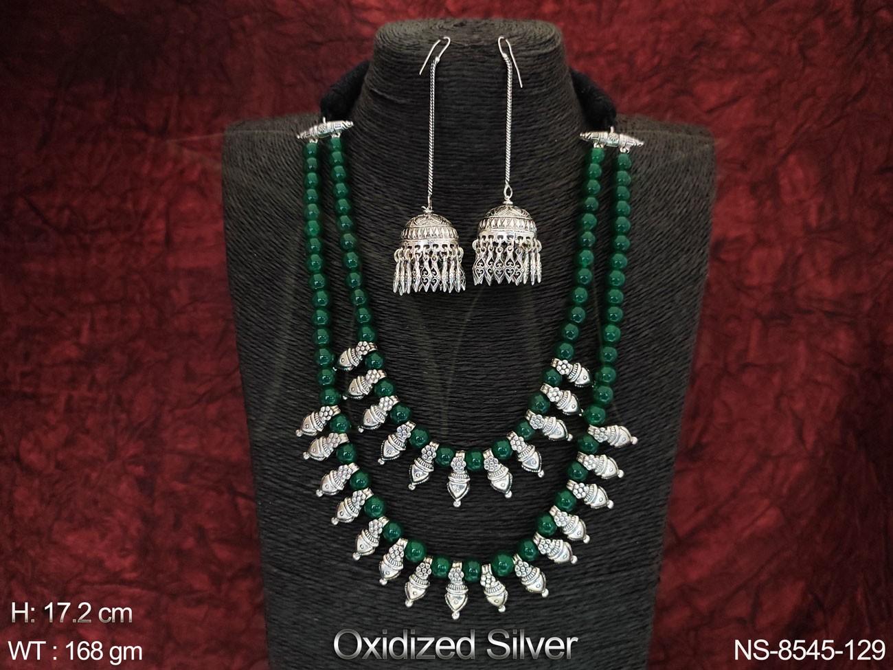 - Designer Fancy Style Party wear Long Oxidised Silver Necklace Set