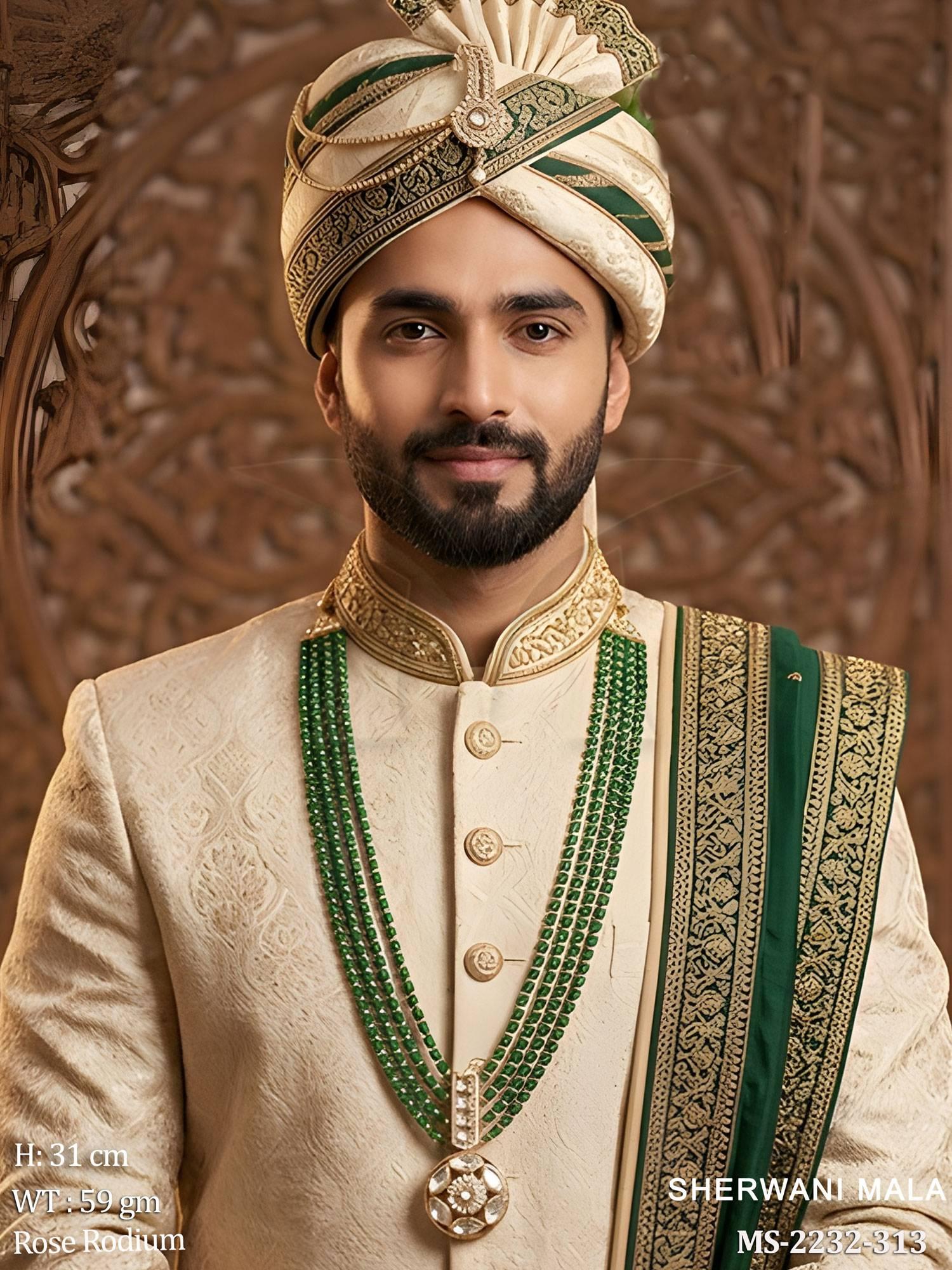 - Designer Groom Wear Kundan Sherwani Mala Necklace