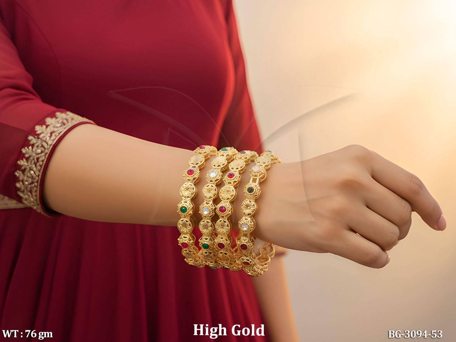 - Designer High Gold Bangles with Floral Carving Design