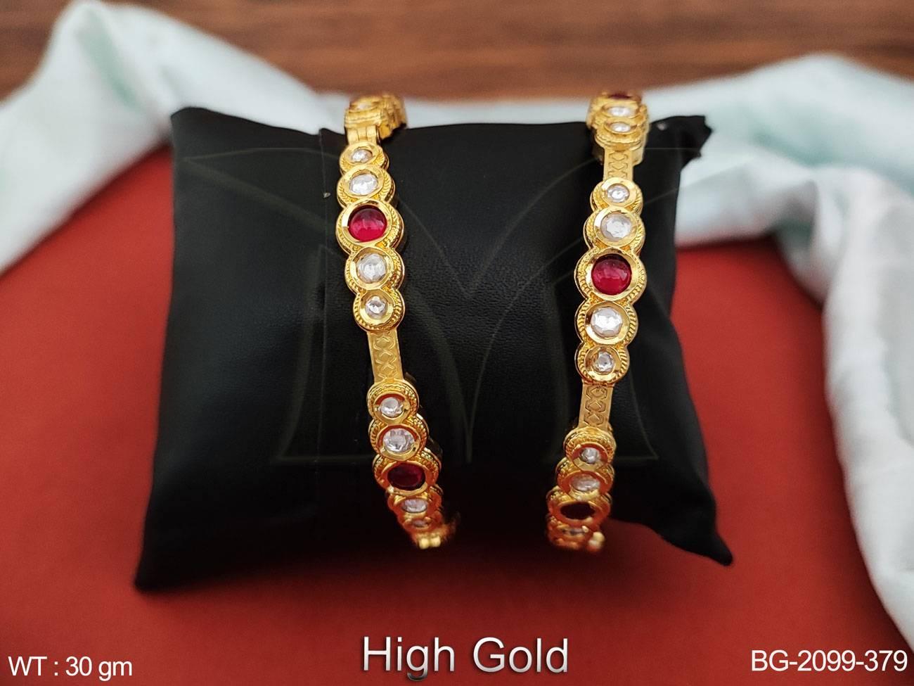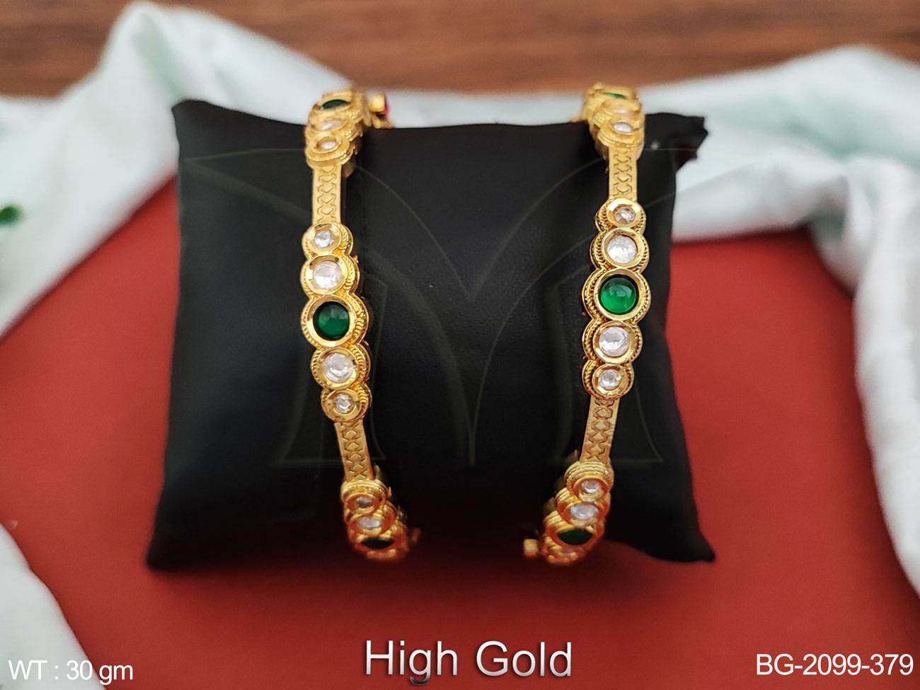 - Designer Kundan Jewellery High Gold Polish Party Wear Party Wear 2 Bangles Set