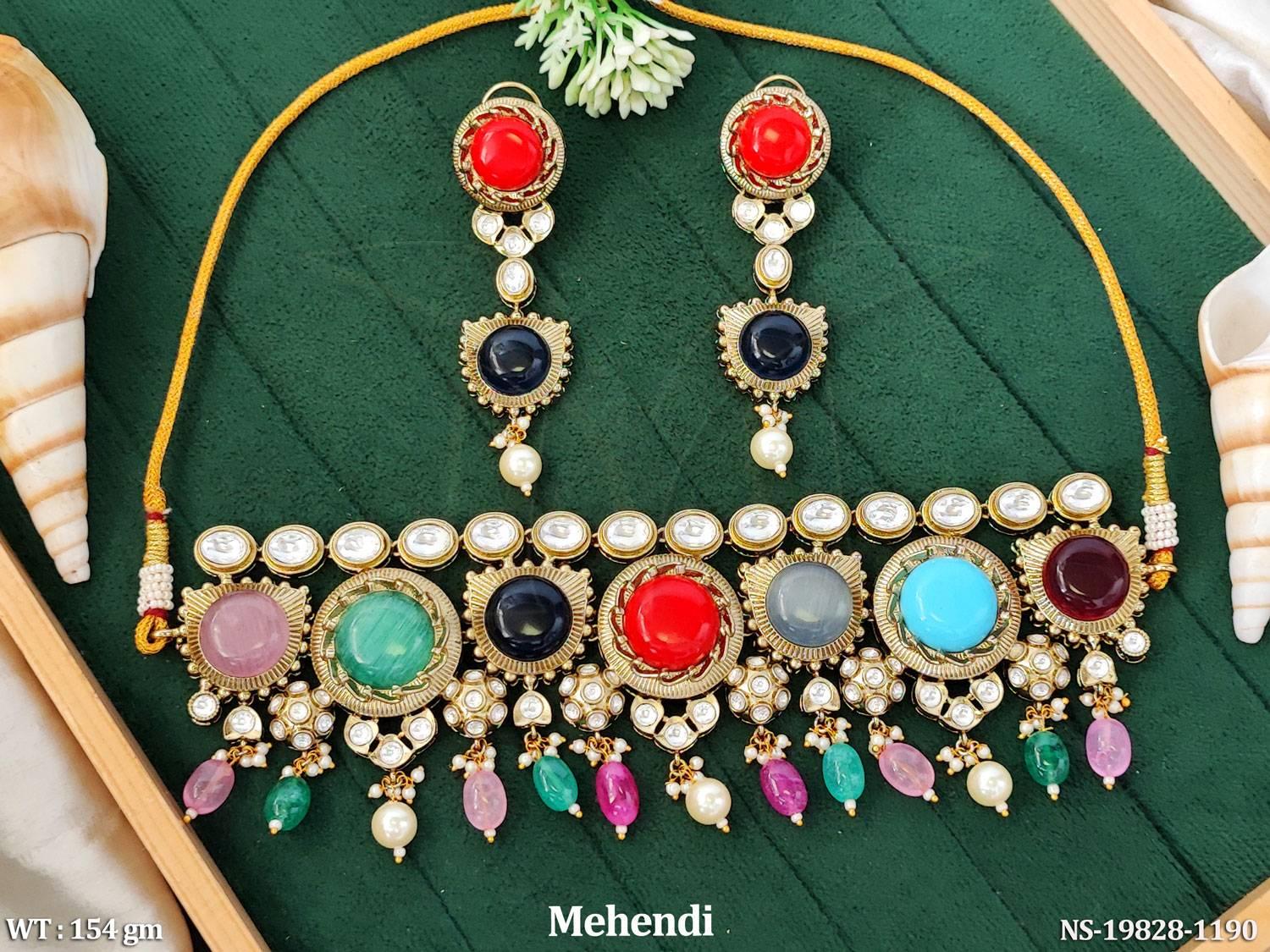- Designer Kundan Stone Choker Necklace Set with Earrings