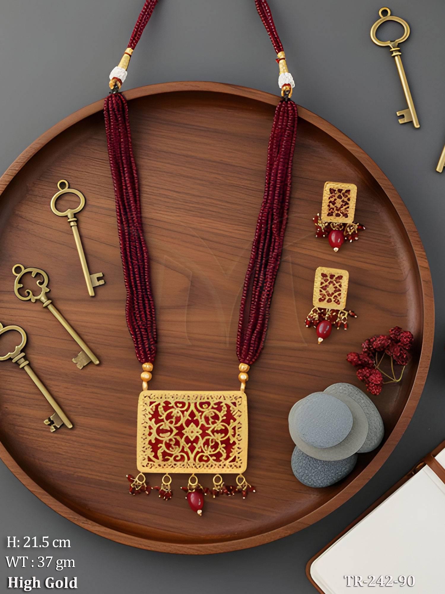 2. Designer Rajasthani Thewa Necklace Set for Festive Wear