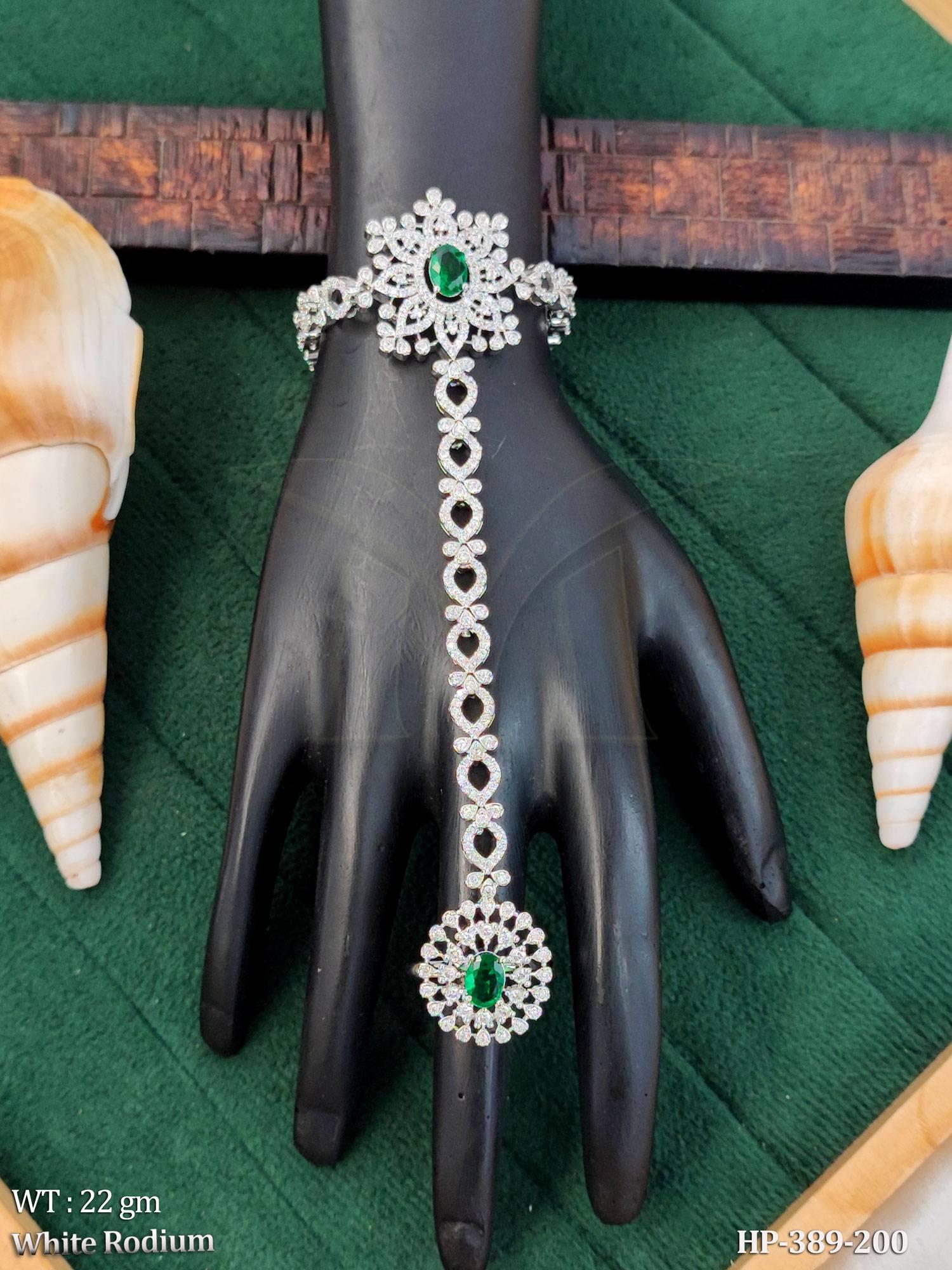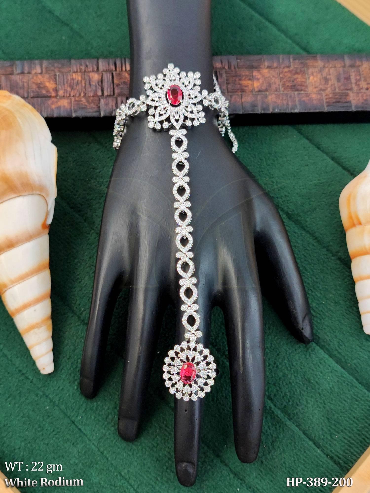 - Designer White Rodium CZ AD Full Stone Haath Paan