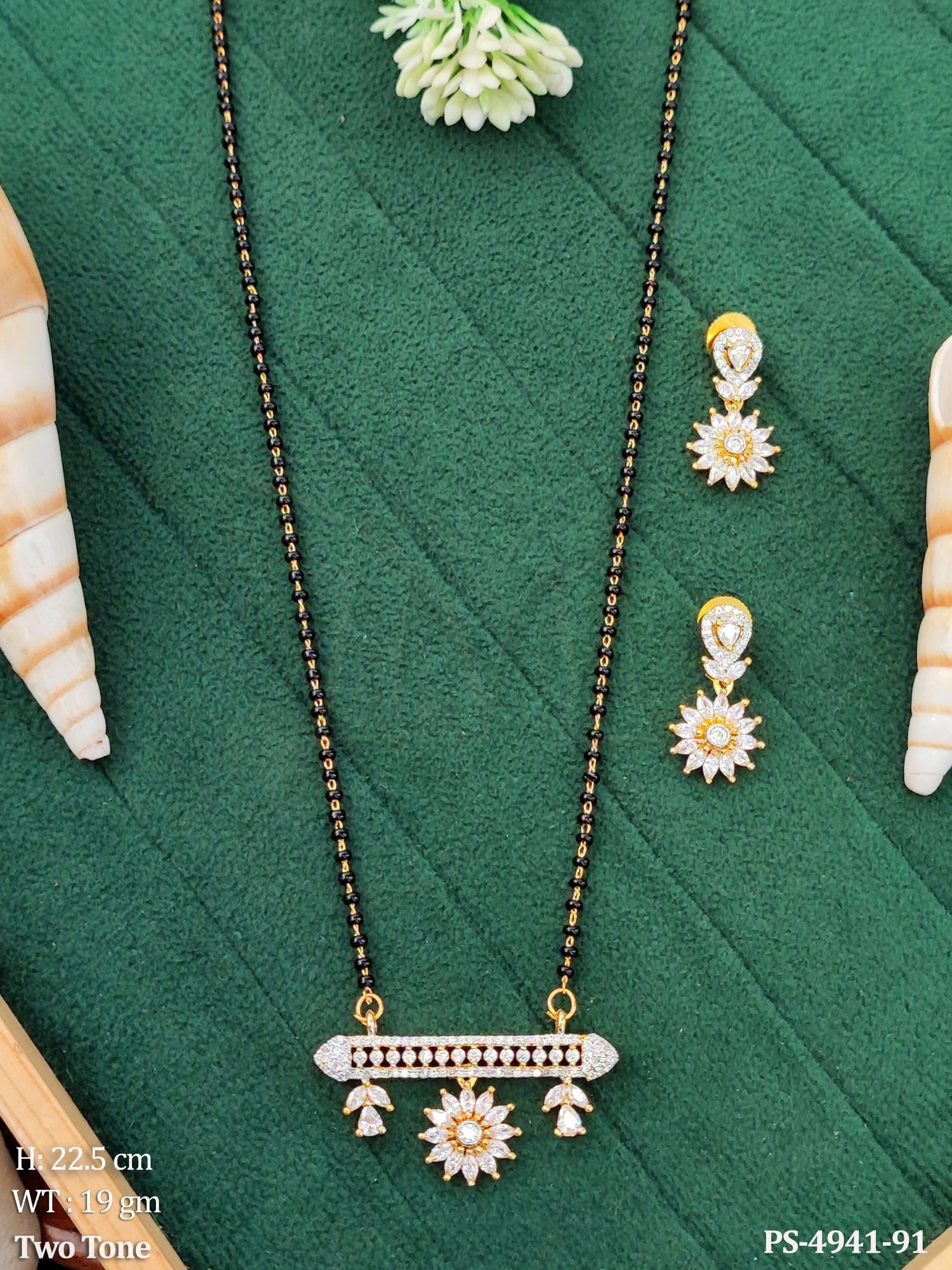 - Elegant AD Floral Mangalsutra with Matching Earrings