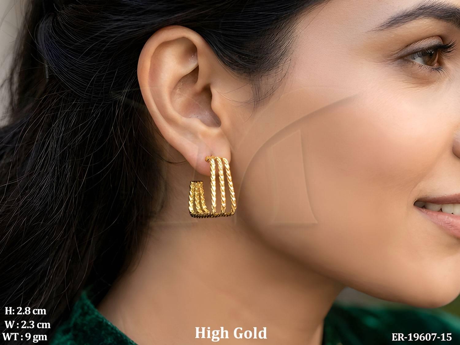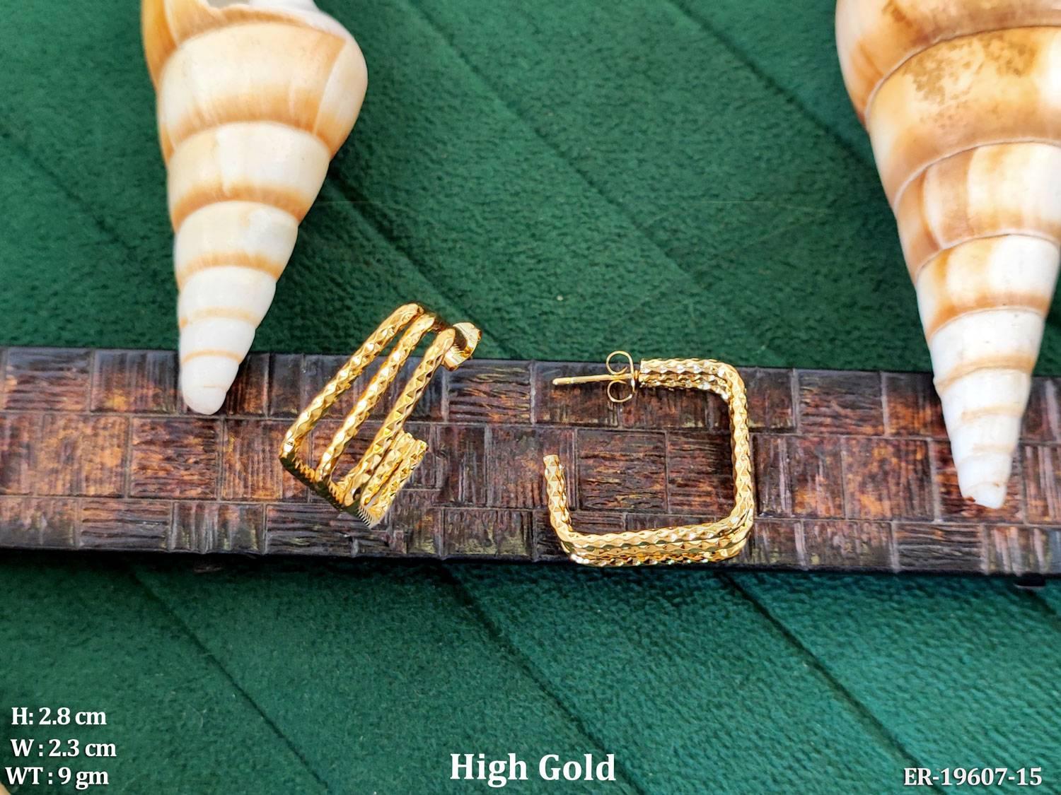 - Elegant Gold Square Shape Earrings with Pattern Design