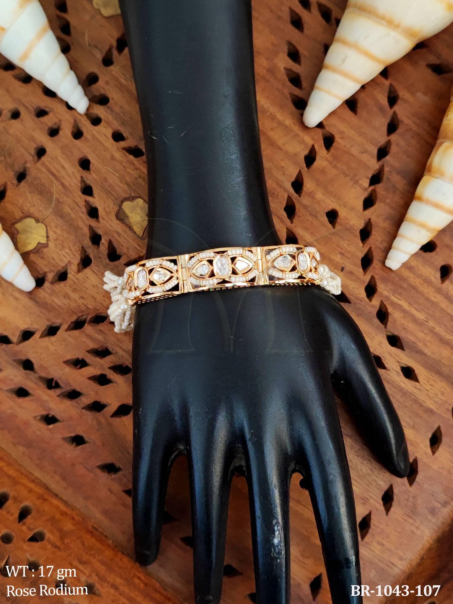 - Elegant Rose Rodium Multi Stone Kundan Bracelet Set