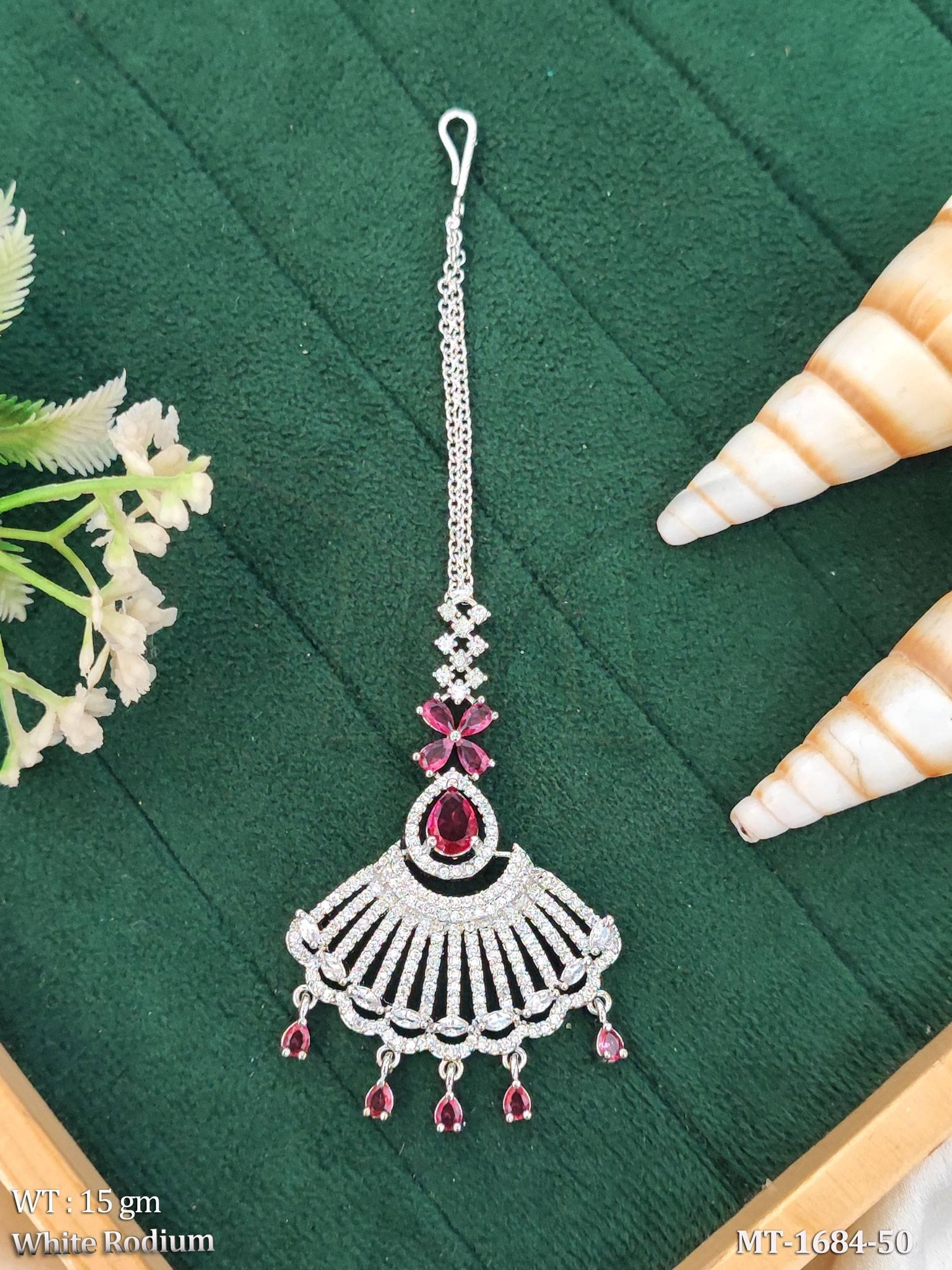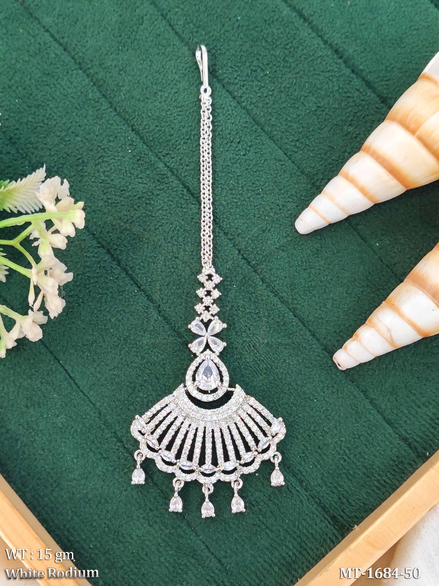 - Elegant White Rodium Finish Bridal Maang Tikka