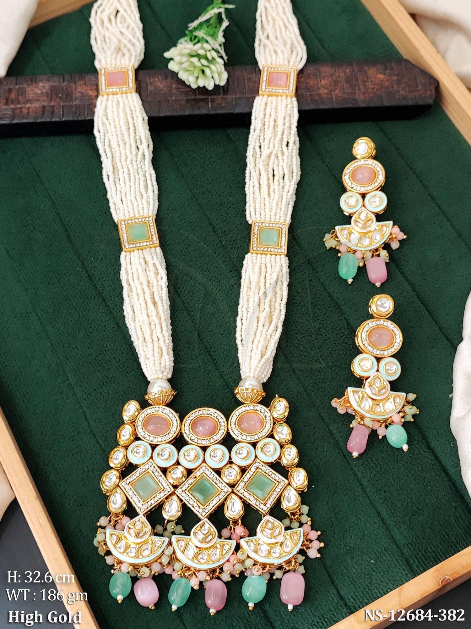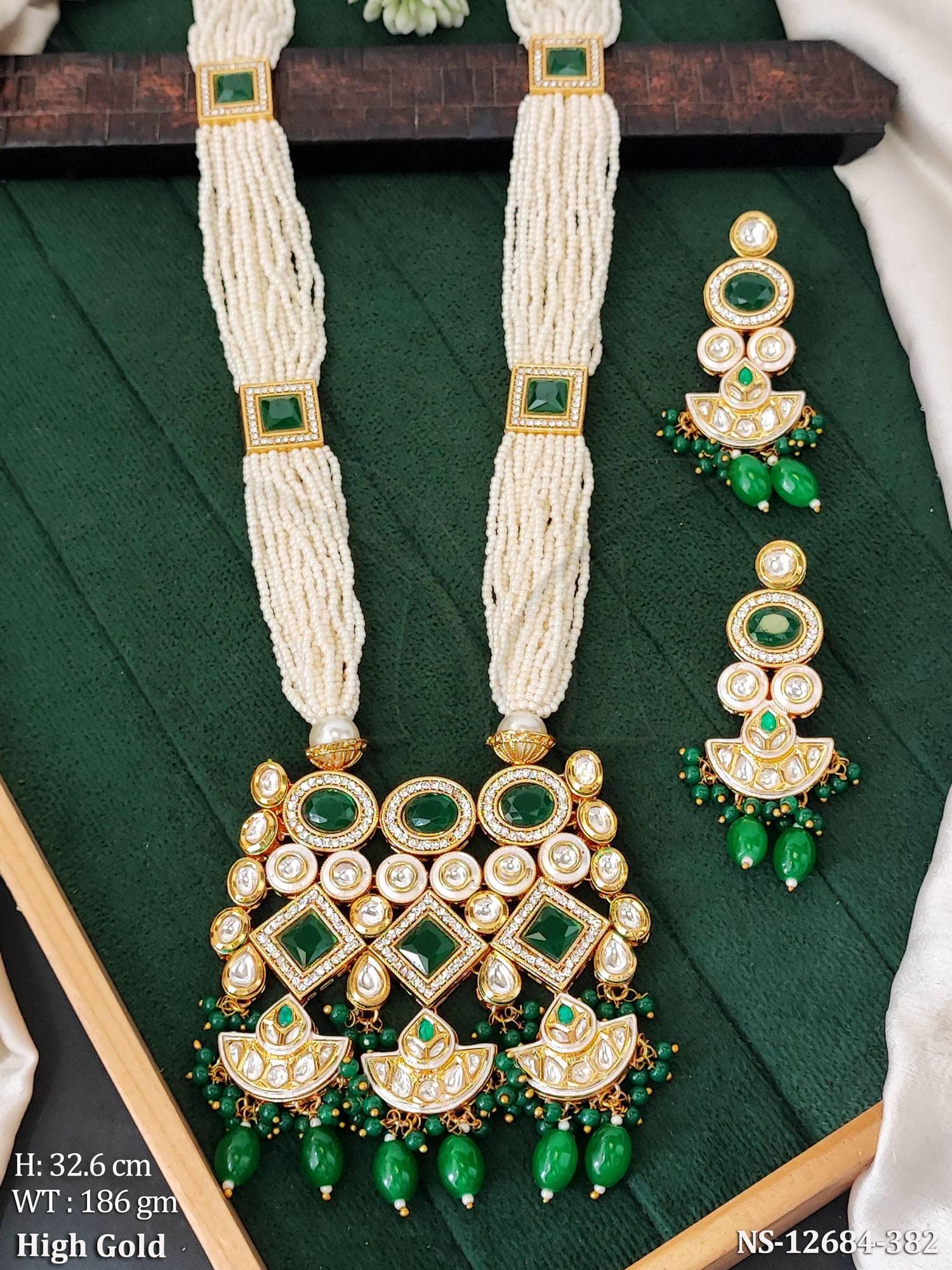 - Ethnic Beaded High Gold Polsih Fancy Design Party wear Long Kundan Necklace Set