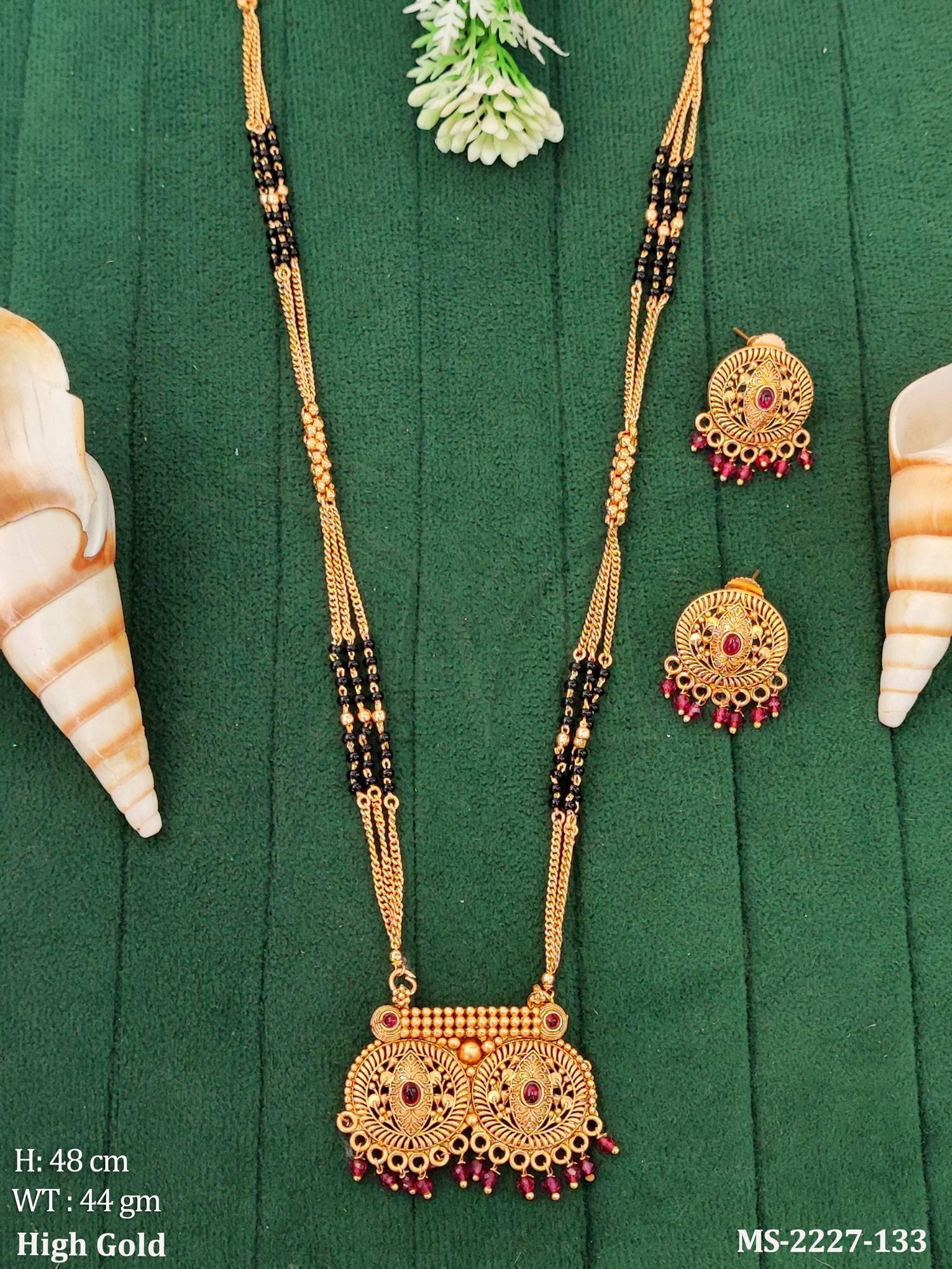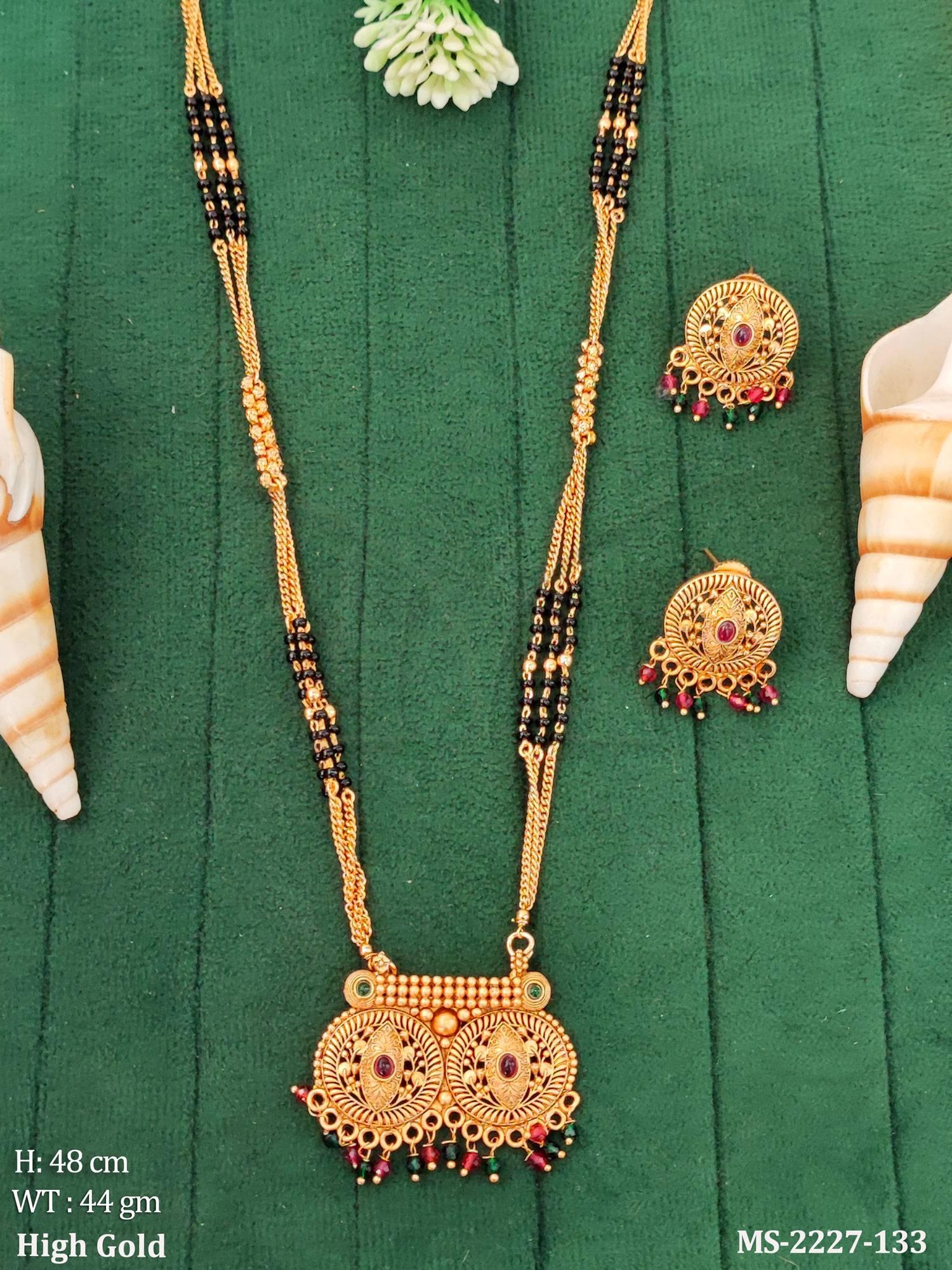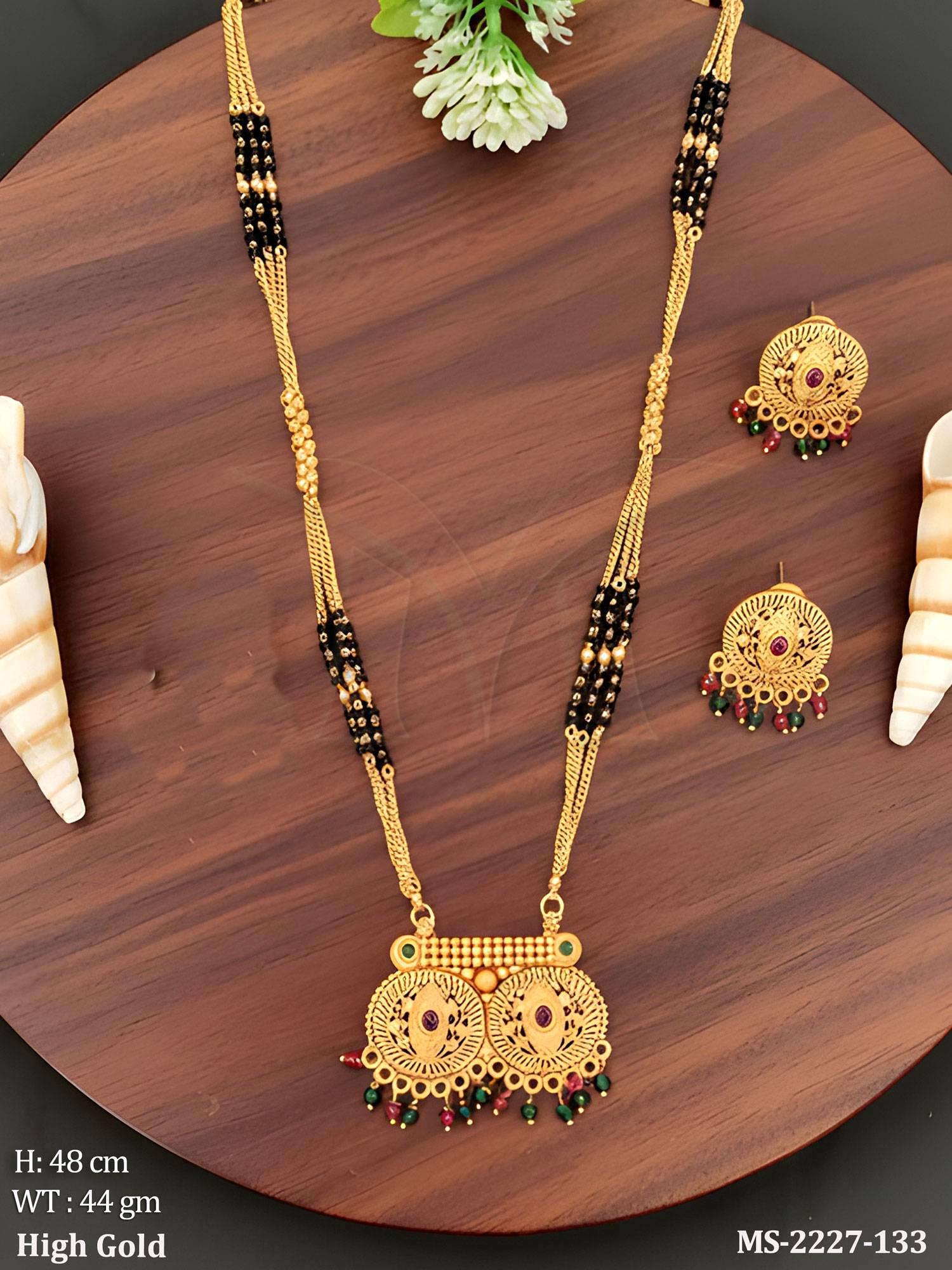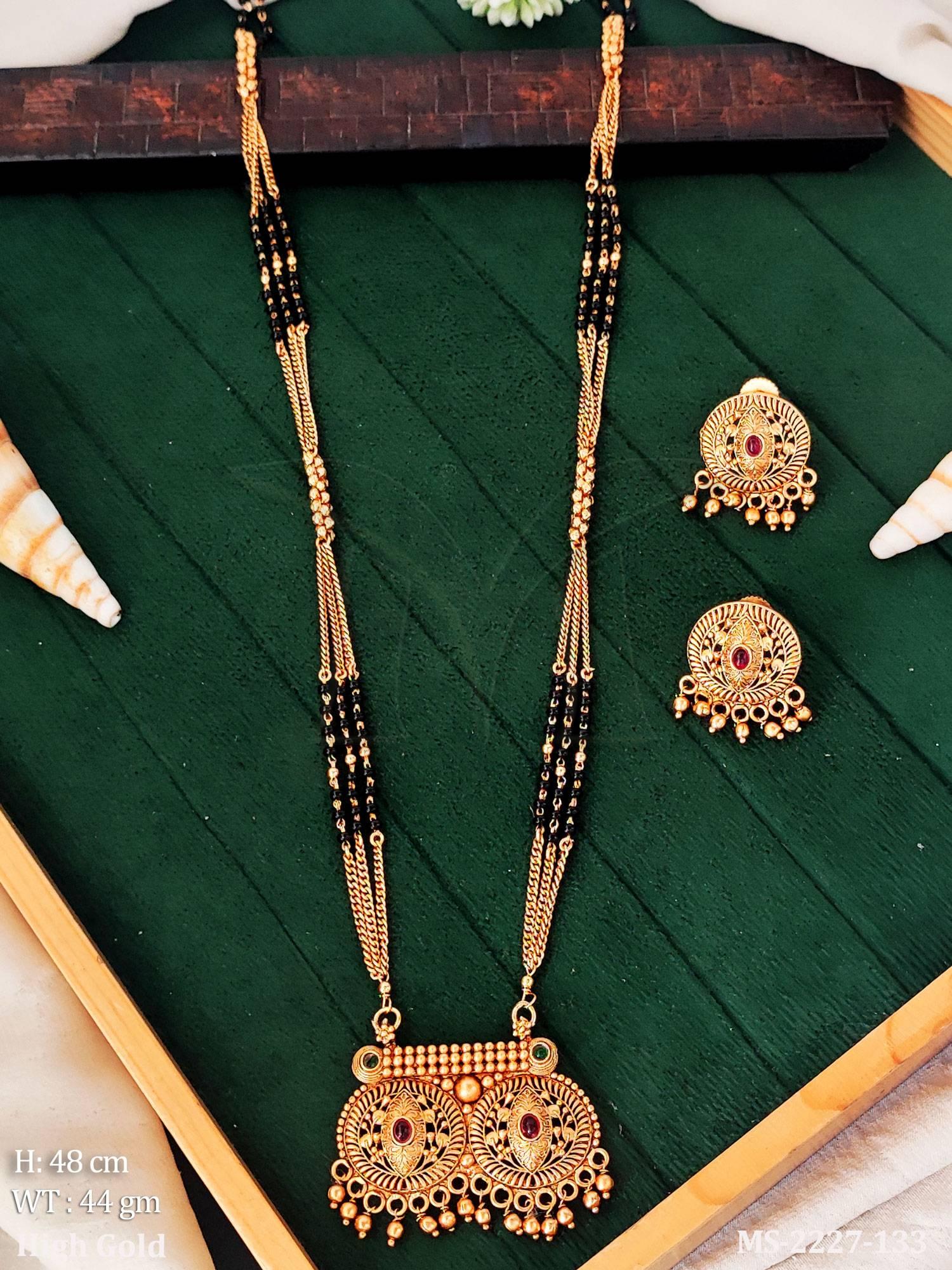 - Ethnic Designer Black Bead Mangalsutra with Earrings