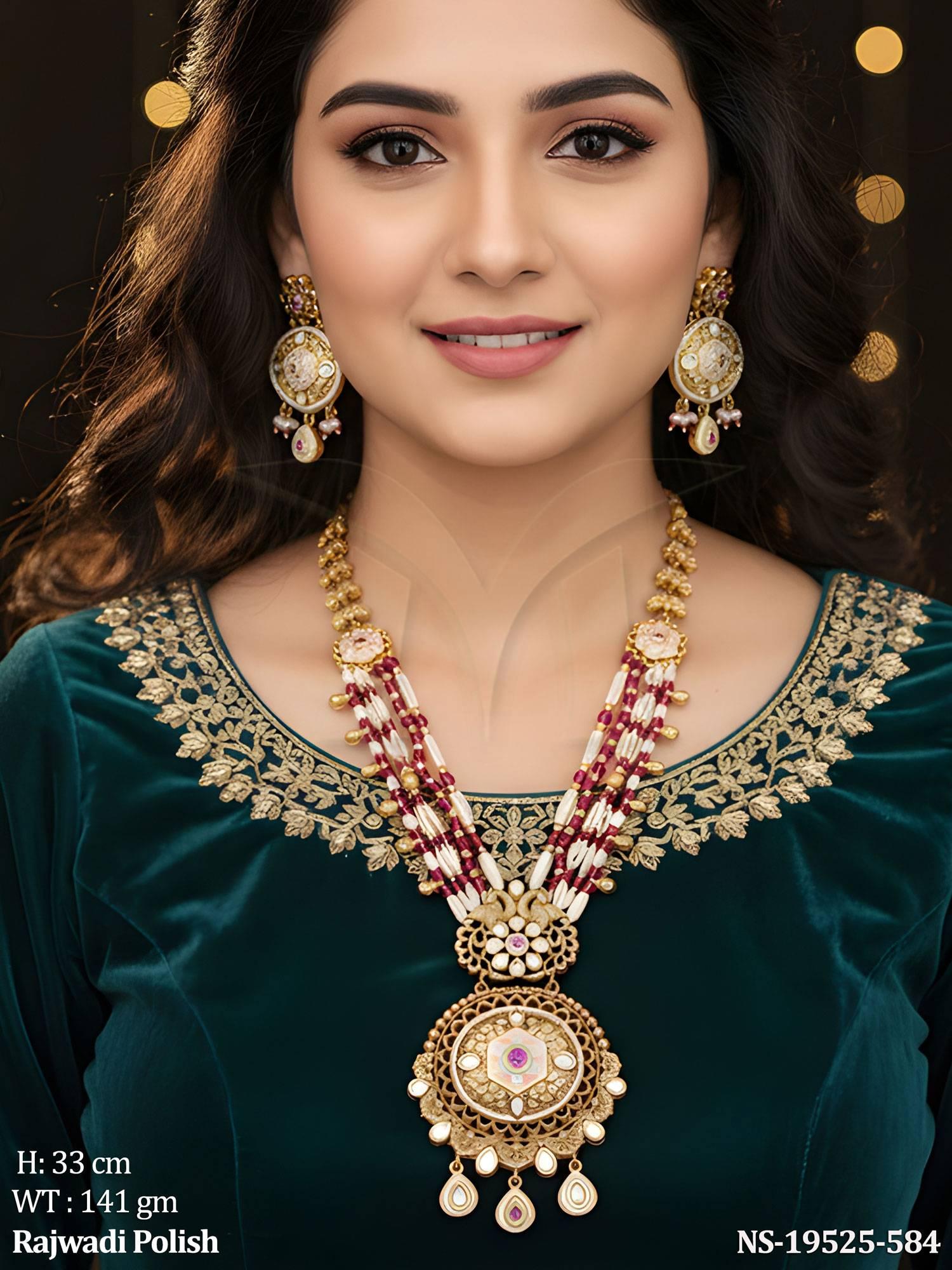 - Ethnic Rajwadi Designer Long Kundan Necklace for Women