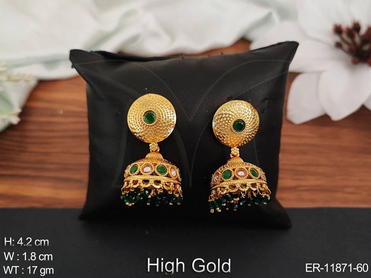 - Fancy Style Clustered Pearl High gold Polish Antique Style Designer Jhumka Earring