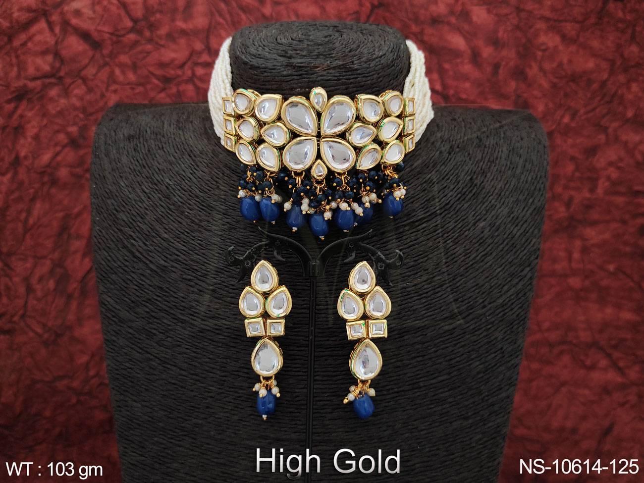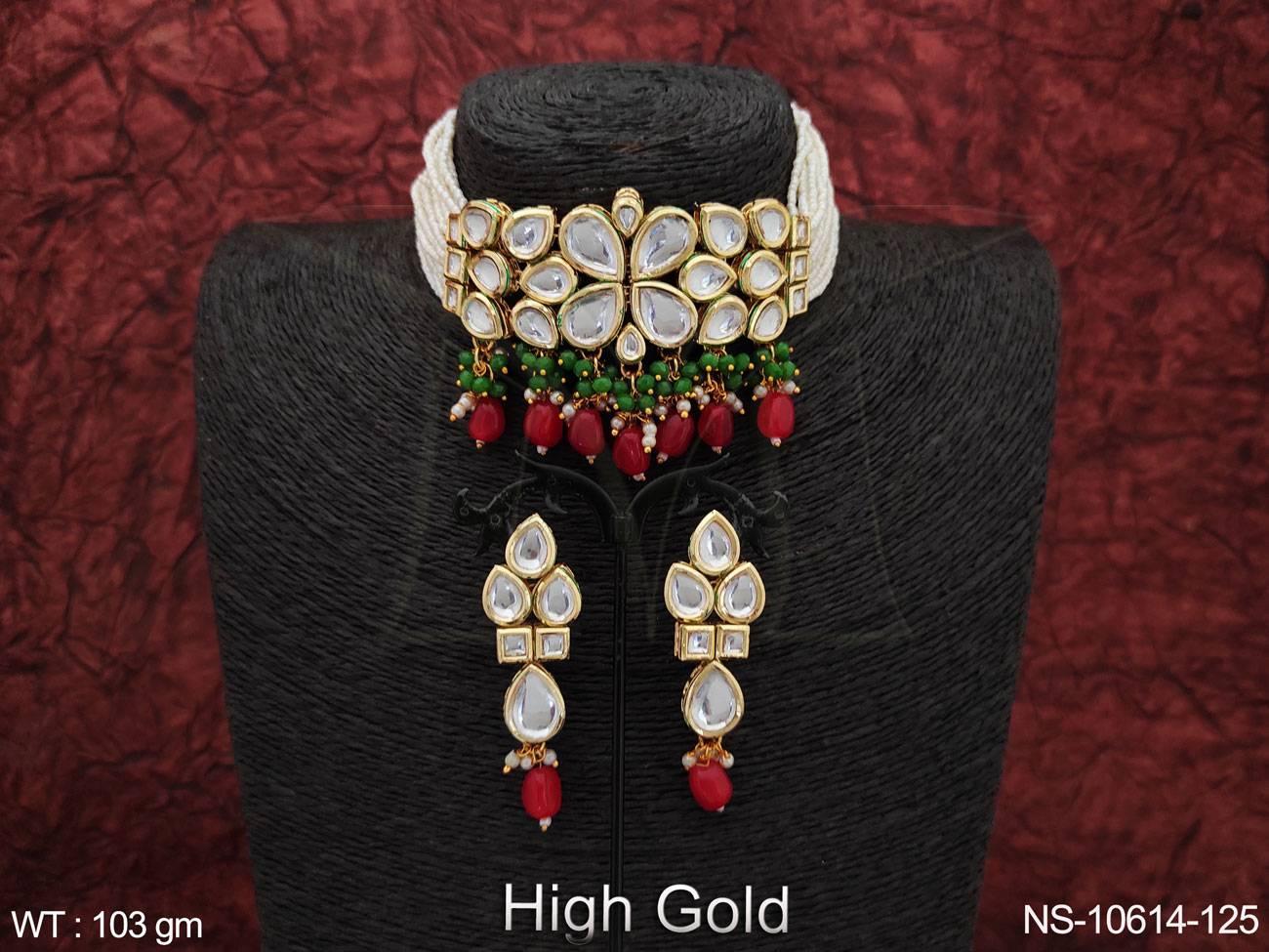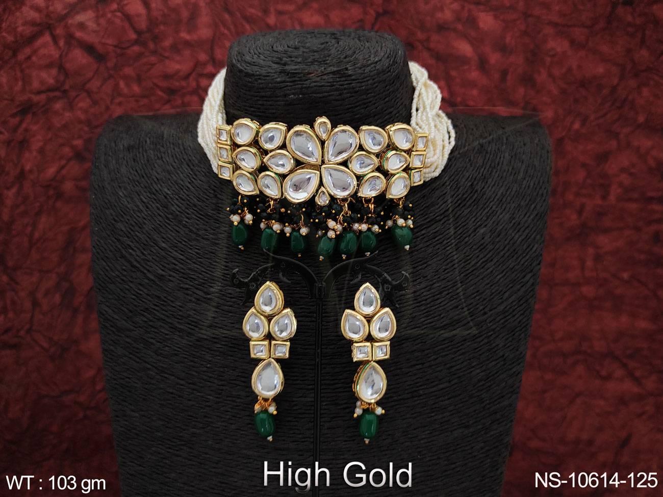 - Fancy Style High Gold Polish Designer Kundan Jewellery Party wear Choker Necklace Set