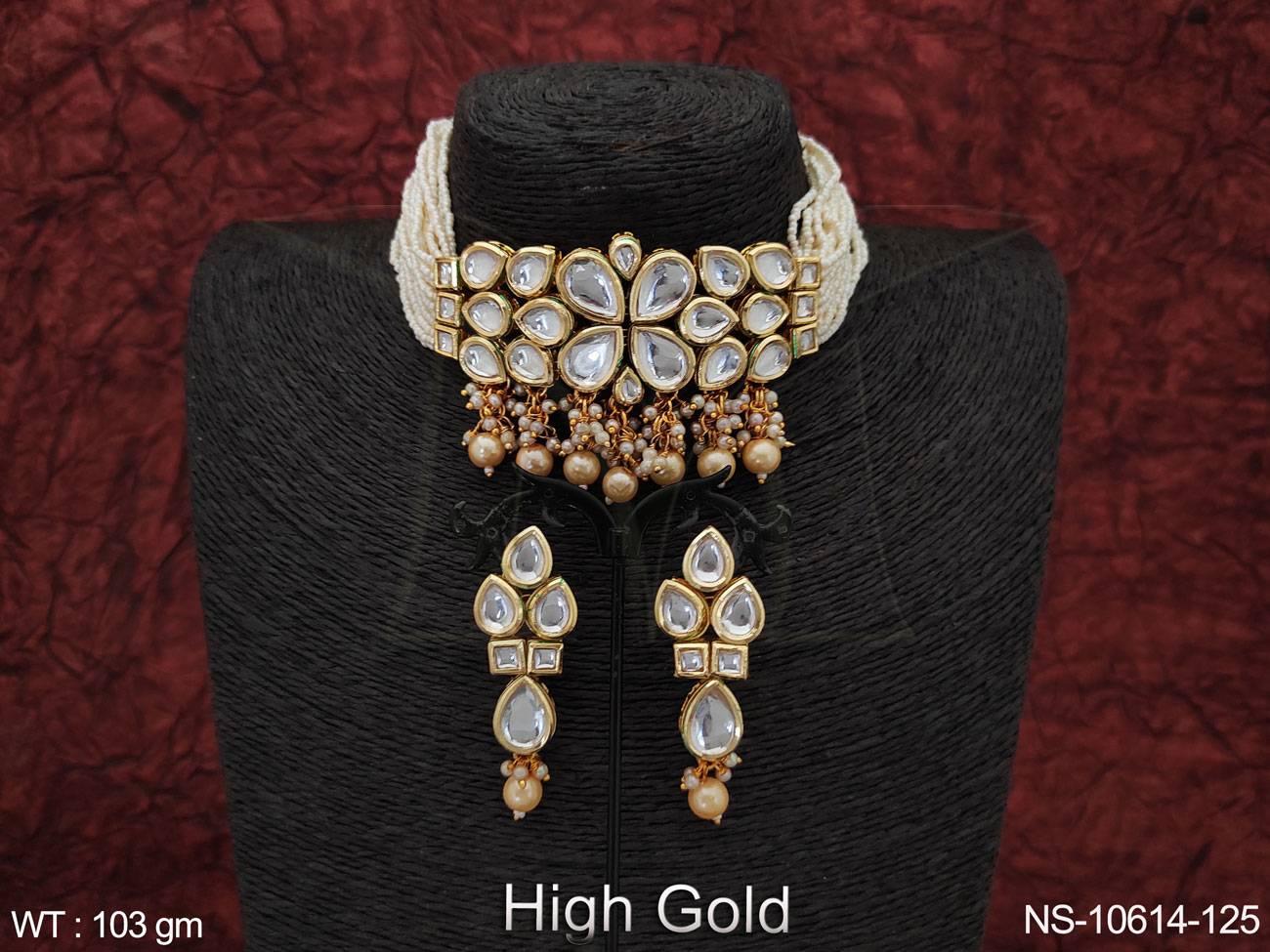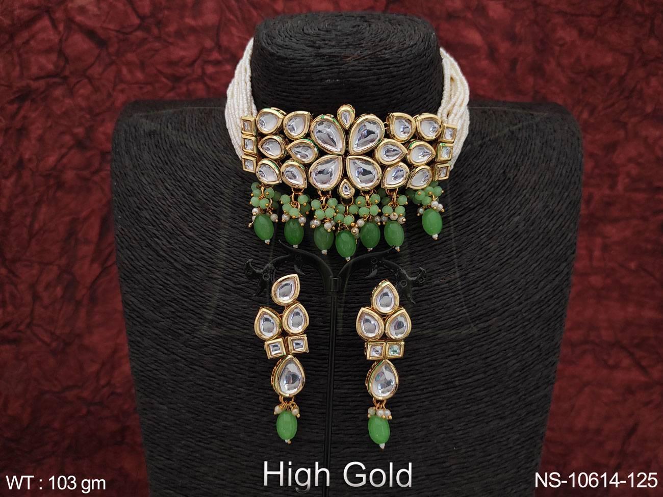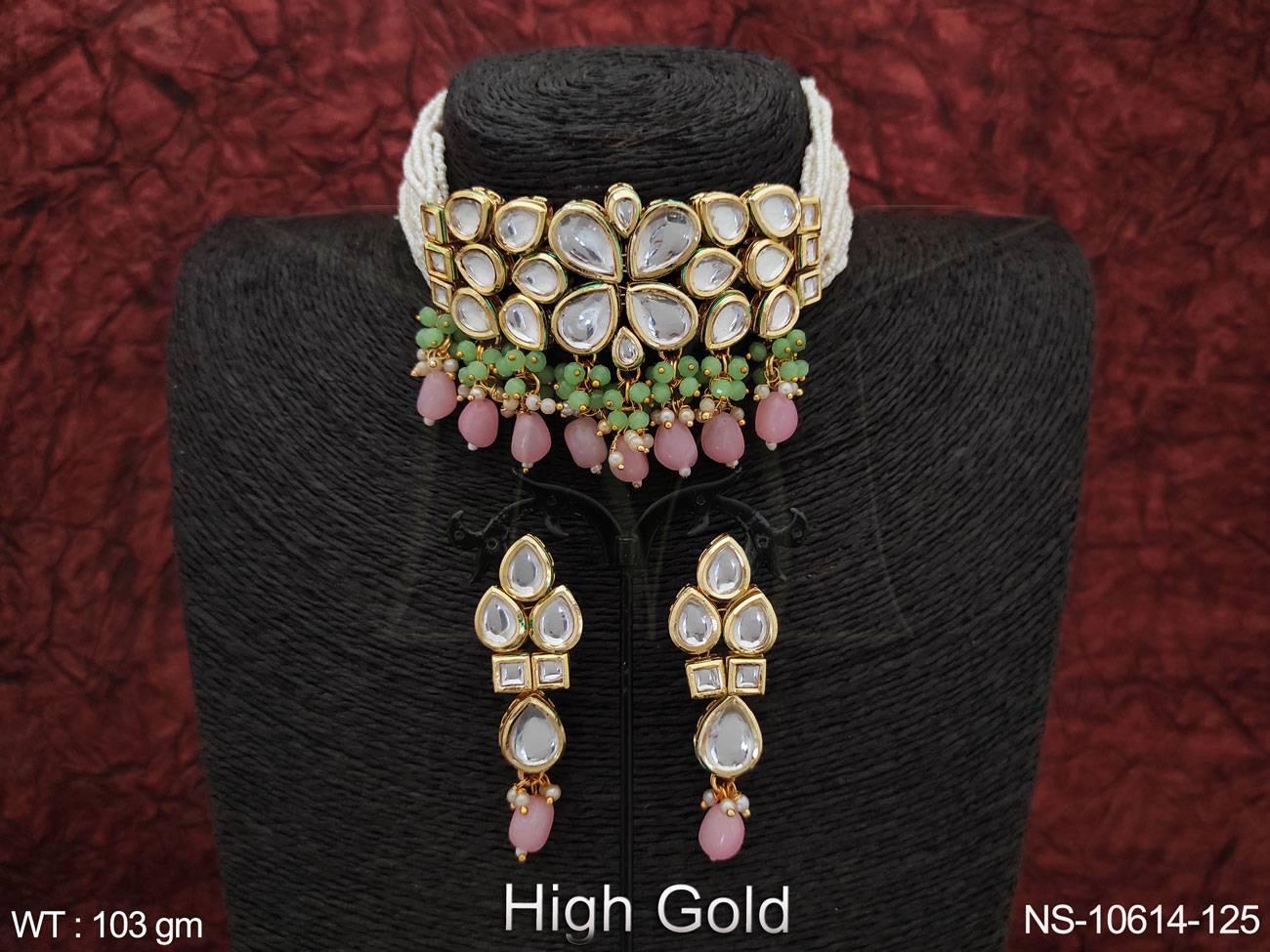 - Fancy Style High Gold Polish Designer Kundan Jewellery Party wear Choker Necklace Set