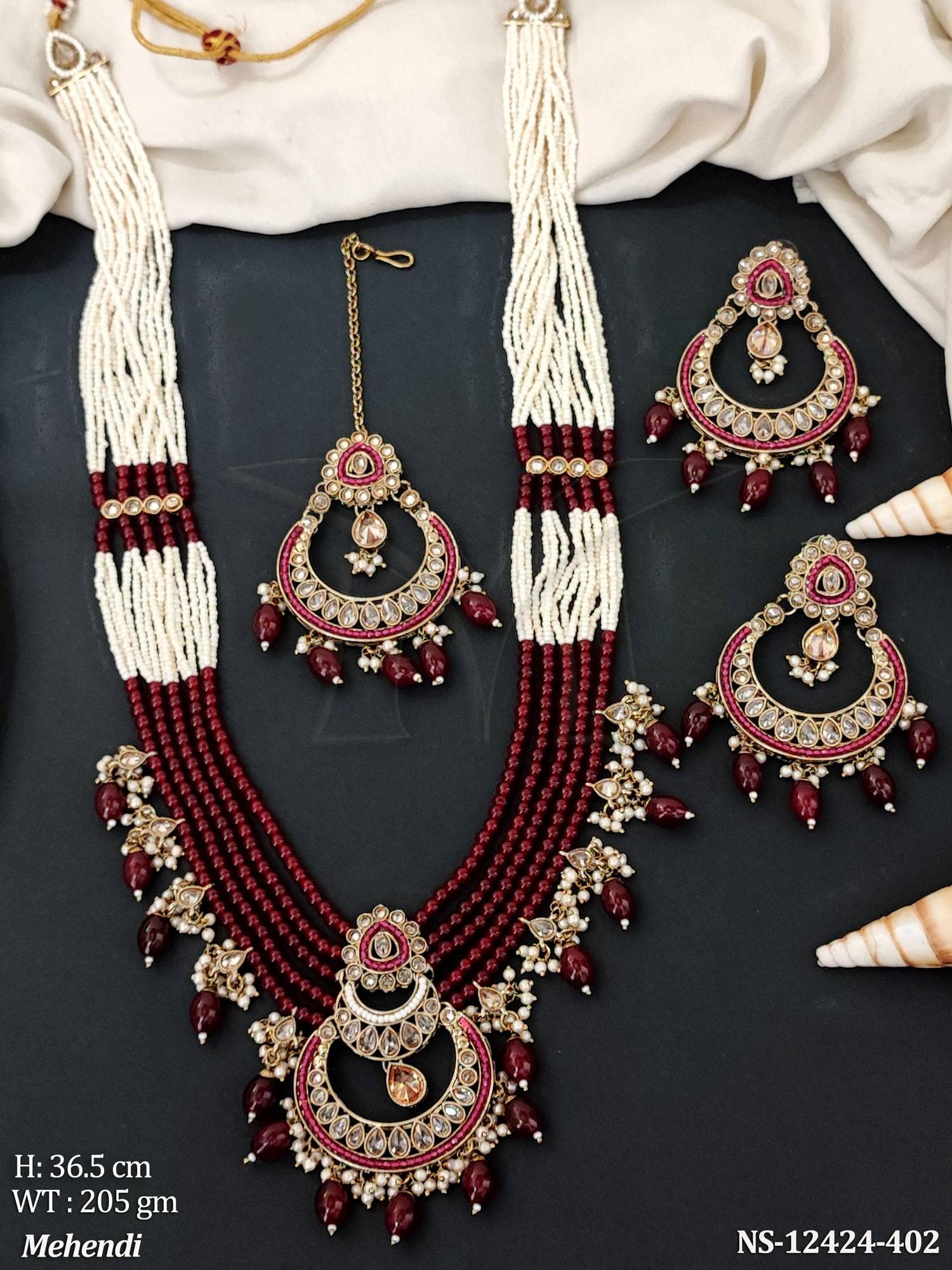 - Fancy Style Mehendi Polish Party wear Desinger Ahtique Jewellery Antique Long Beaded Style Necklace Set