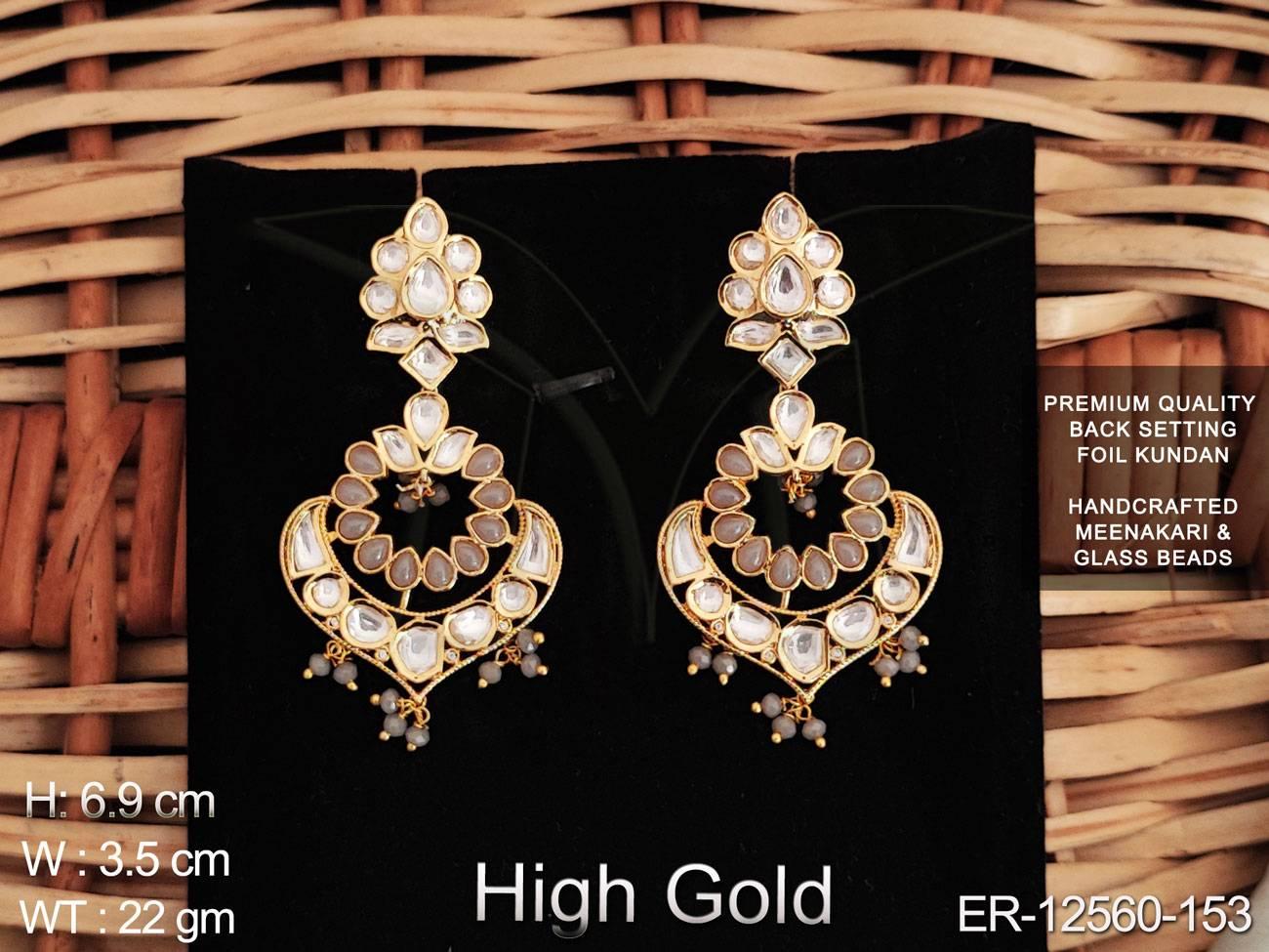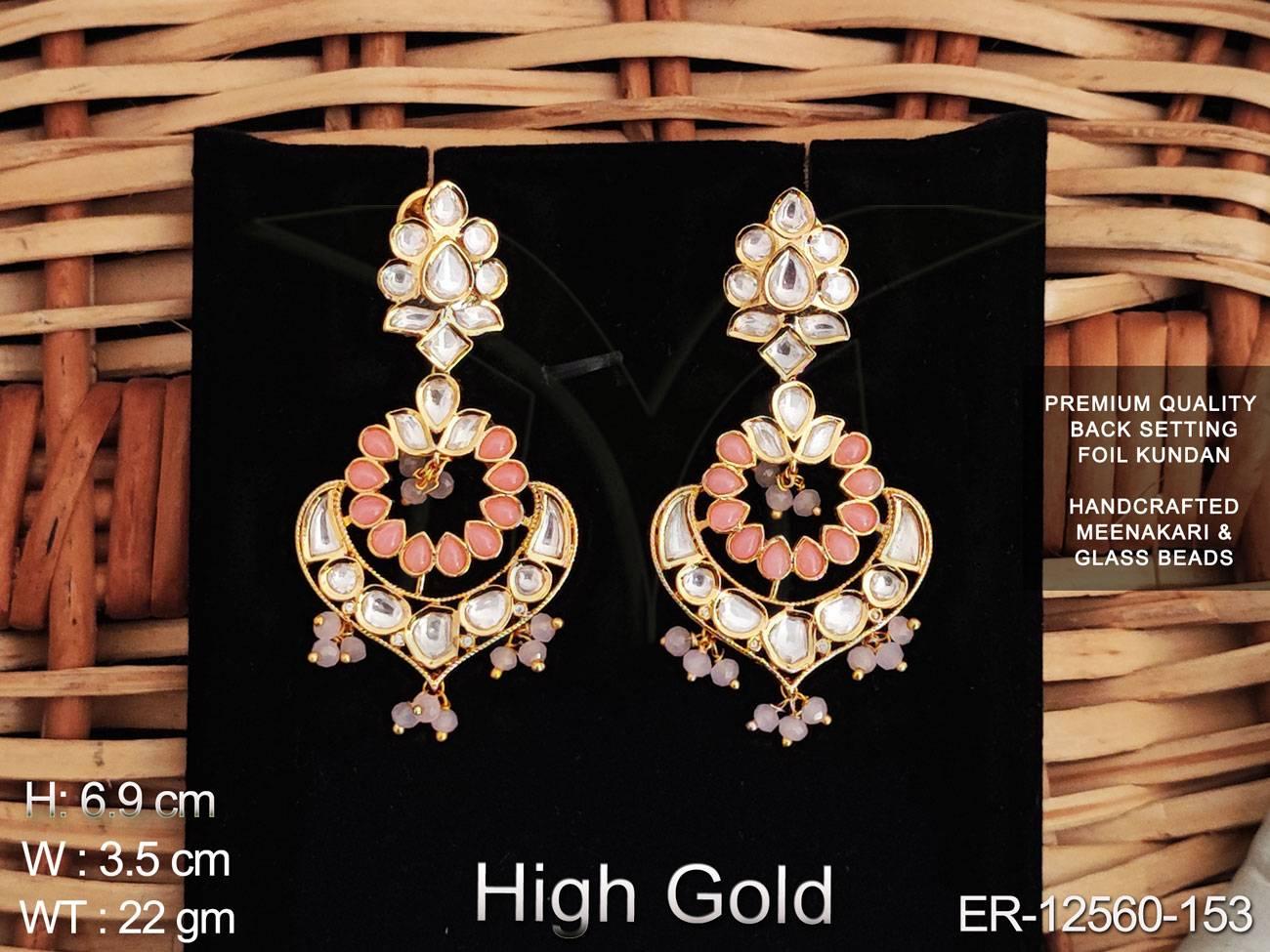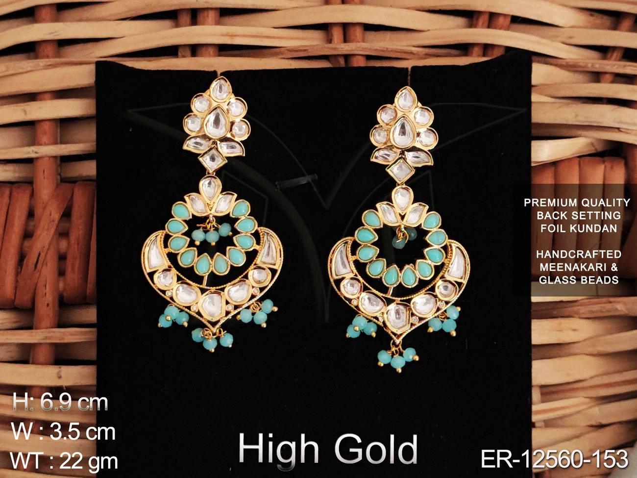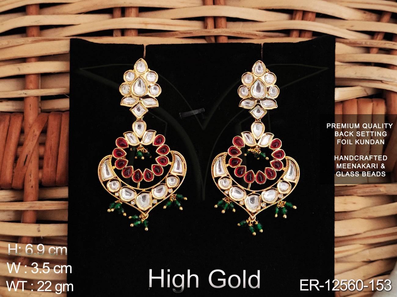 - HandCrafted Meenakari Design High Gold Polish Kundna Glass Beads Earring
