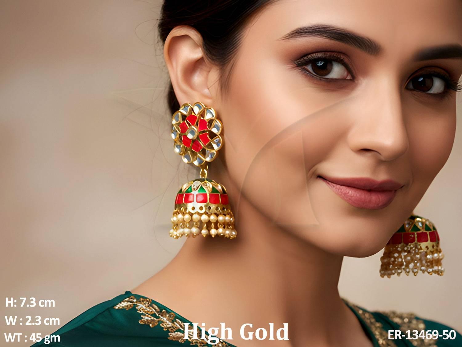 High Gold Polish Beautiful Meenakari Design Clustered Pearl Fancy Style Party wear Jhumka Earring