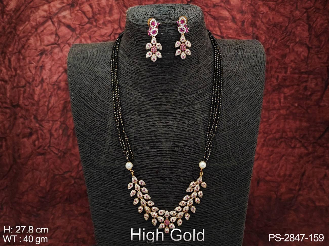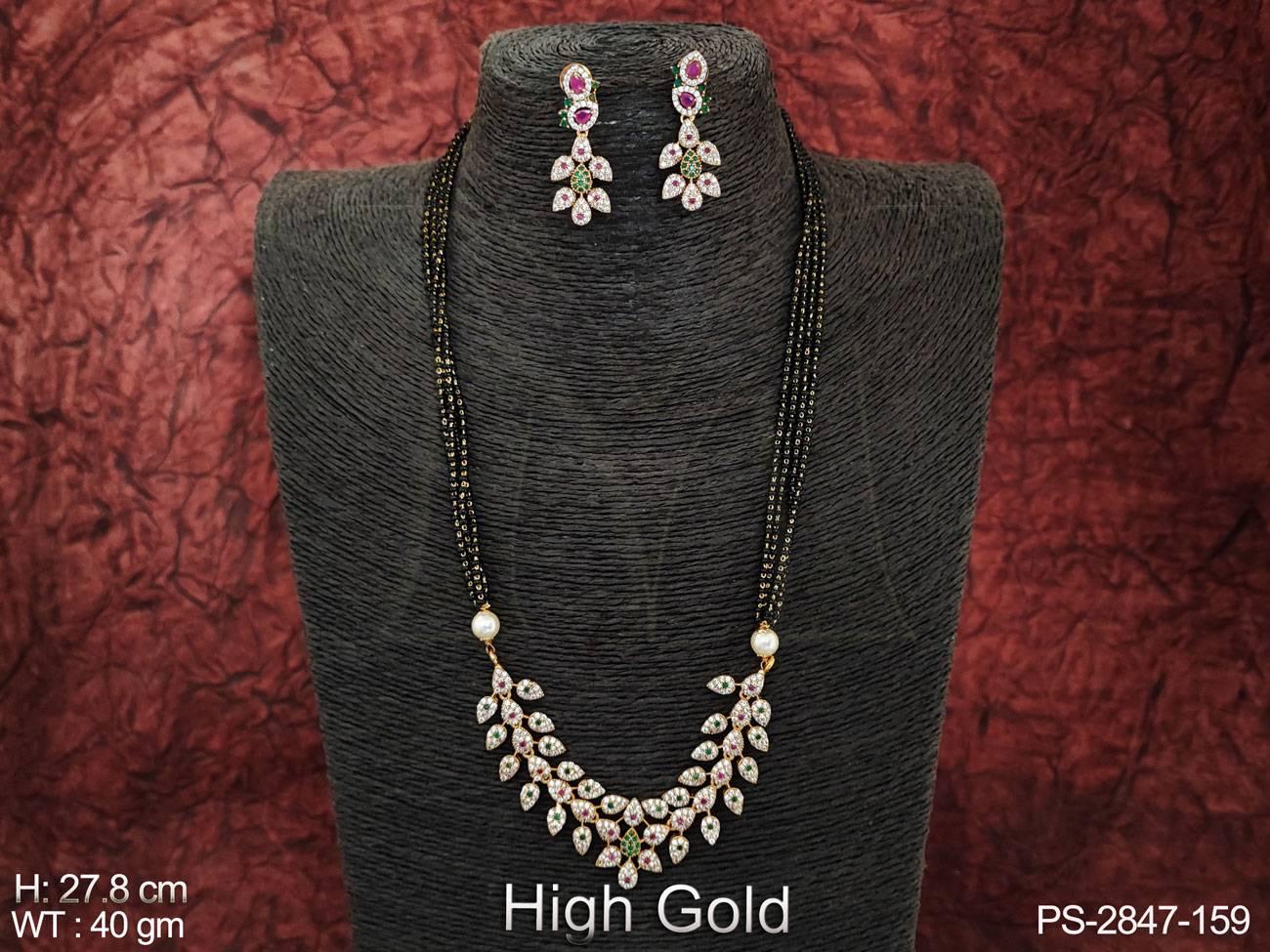 - High Gold Polish designer Fancy Style Party wear antique Jewellery Long Pendant Set