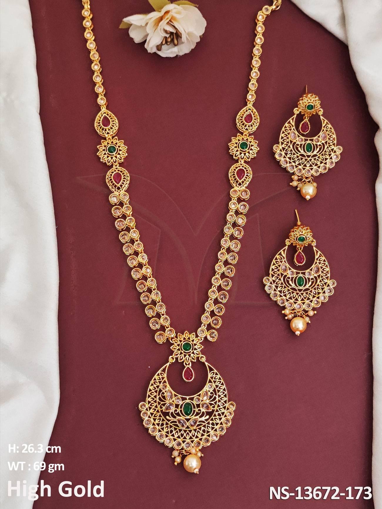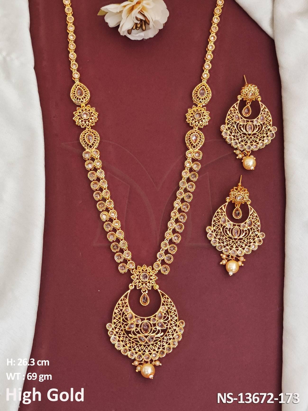 - High Gold Polish Fancy Design Party wear Beautiful Antique Jewellery antique Long Necklace Set