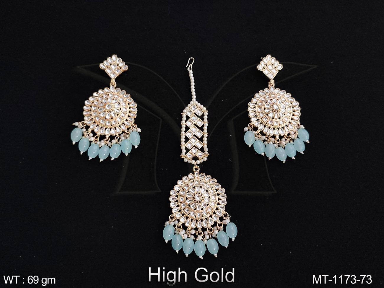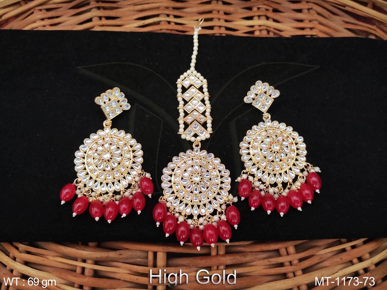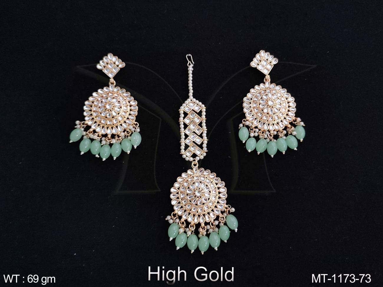 - High Gold Polish Fancy Design Party wear Beautiful Antique Maang Tikka with Earring