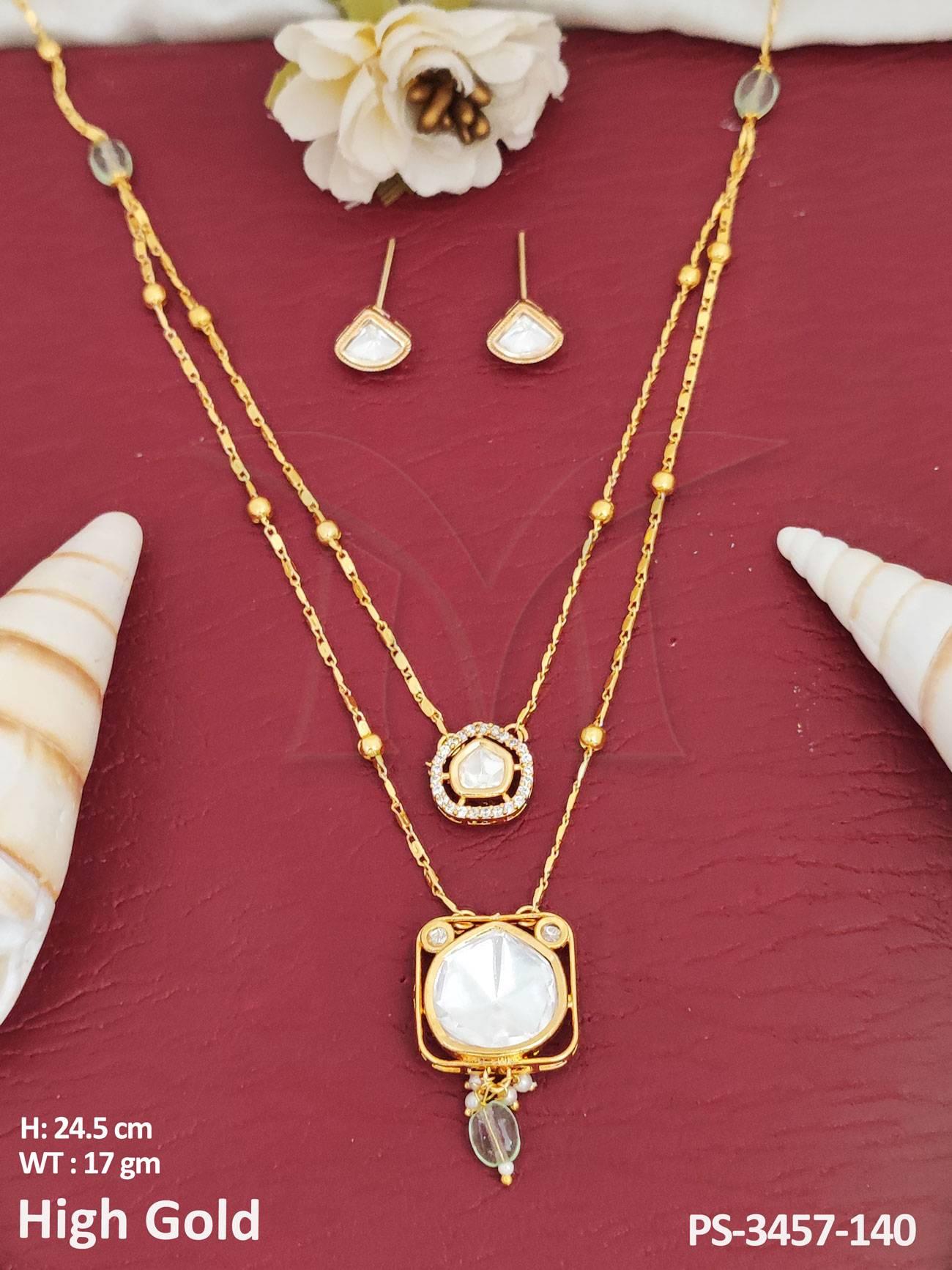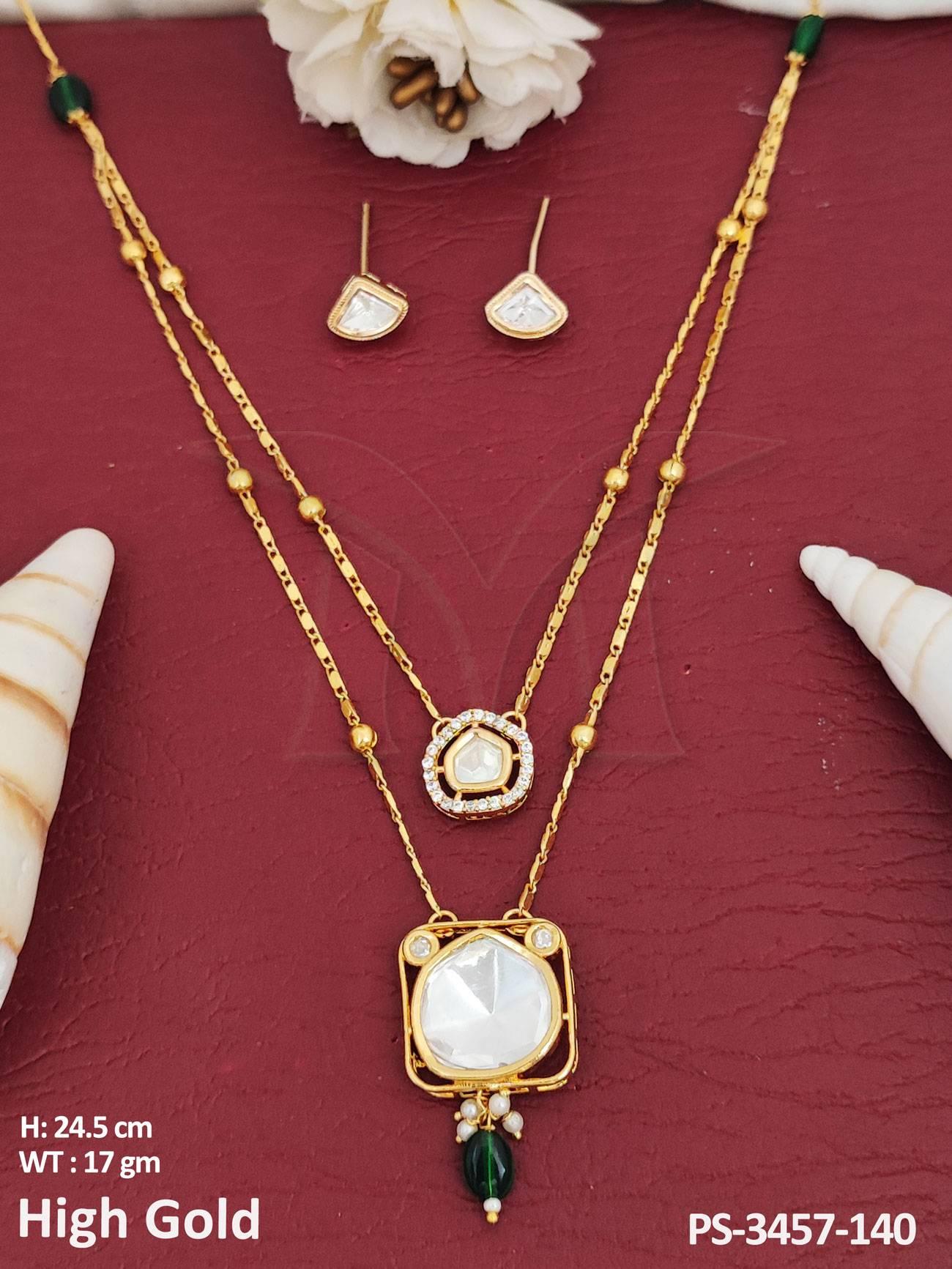 - High Gold Polish Fancy Designer Wear Kundan Pendant Set